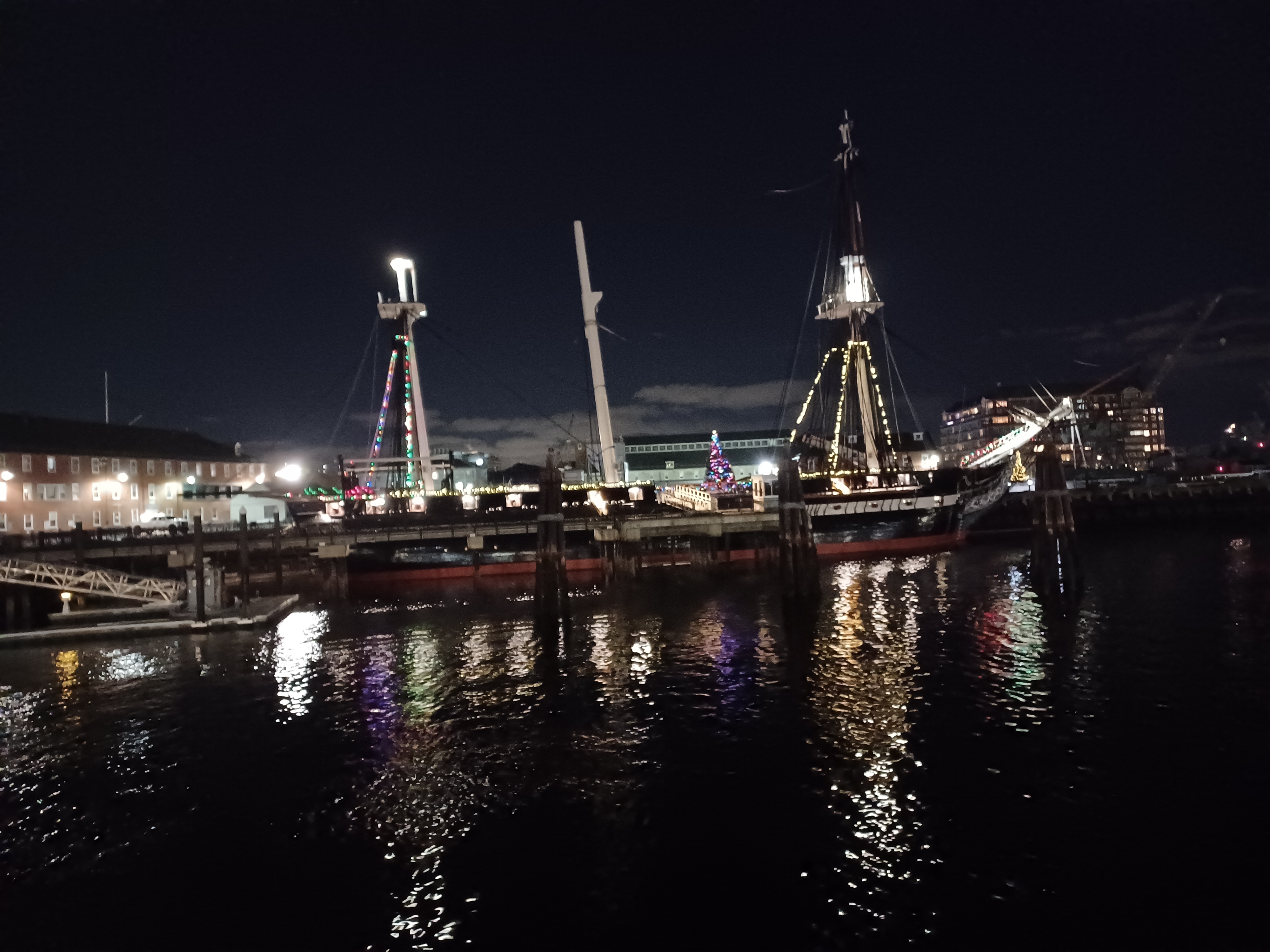 Picture #3: USS Constitution with Christmas lights #3 Thumb: 500x375, 28,995 bytes (29K) Small: 1000x773, 107,383 bytes (105K), (html file) Large: 4000x3000, 3,255,372 bytes (3.1M), (html file) Copyright, Michael Meissner 2023, All rights reserved Samsung A32 5G phone f/1.8, ISO 4000, 1/10 sec, 4.6mm, auto mode, center weight metering 35mm equivalent focal length 25.0mm Programs used: rotate right Taken by Michael Meissner on December 16, 2023 21:45:17 Last modified on December 18, 2023 at 21:13 |