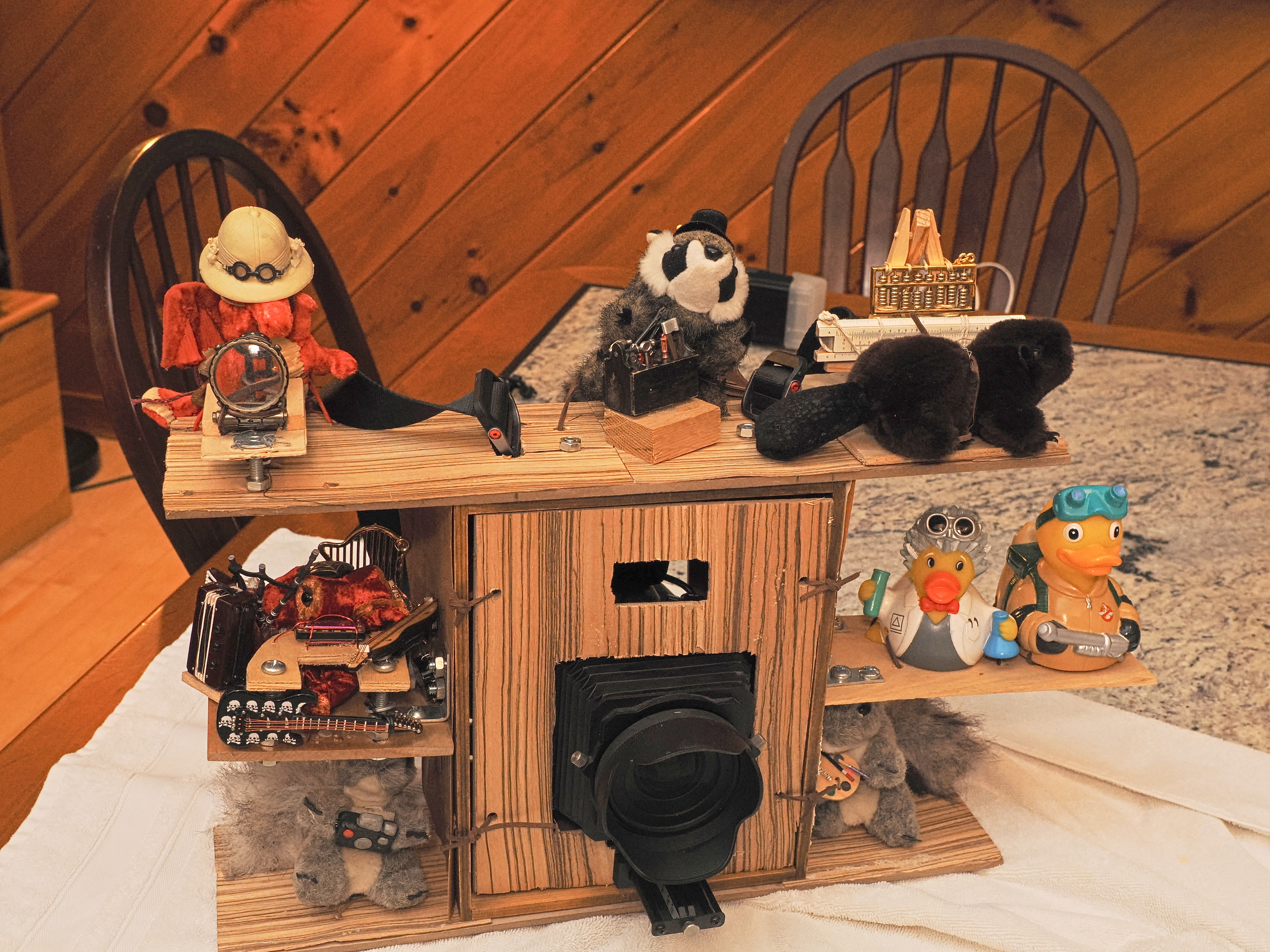 Picture #1: Steampunk camera before adding veneer Thumb: 480x360, 59,399 bytes (59K) Small: 960x743, 197,440 bytes (193K), (html file) Large: 4800x3600, 11,428,187 bytes (11M), (html file) Copyright, Michael Meissner 2023, All rights reserved OM OM1 camera with Olympus-m43 12-40mm f/2.8 lens f/5.6, ISO 200, FL-900R flash, 1/60 sec, 19.0mm, aperture priority, vivid color, matrix metering, IS Auto, anti-shock 35mm equivalent focal length 38.0mm Programs used: crop, gimp, raw therapee Taken by Michael Meissner on May 10, 2023 20:27:59 Last modified on May 20, 2023 at 20:27 |