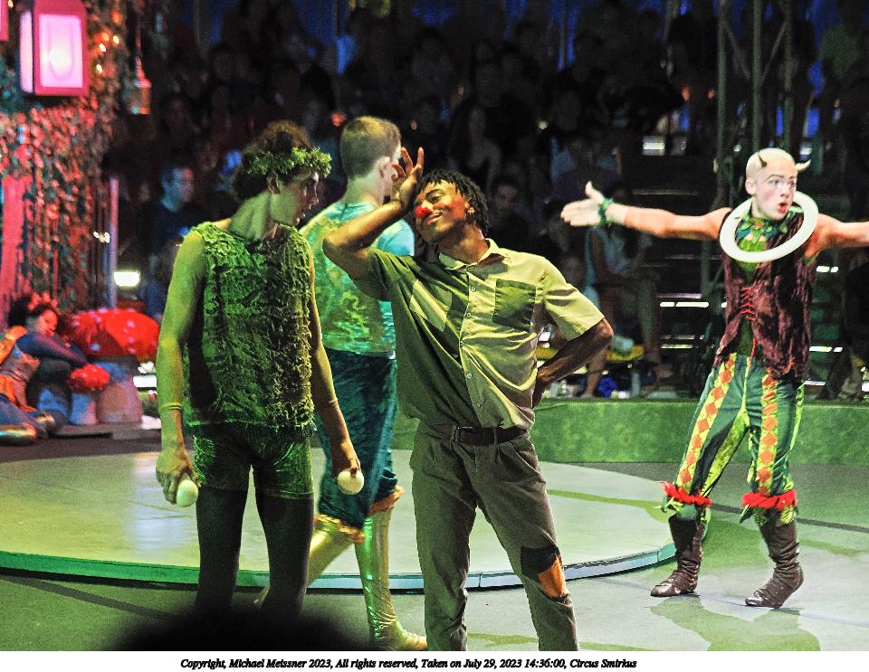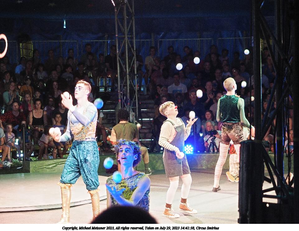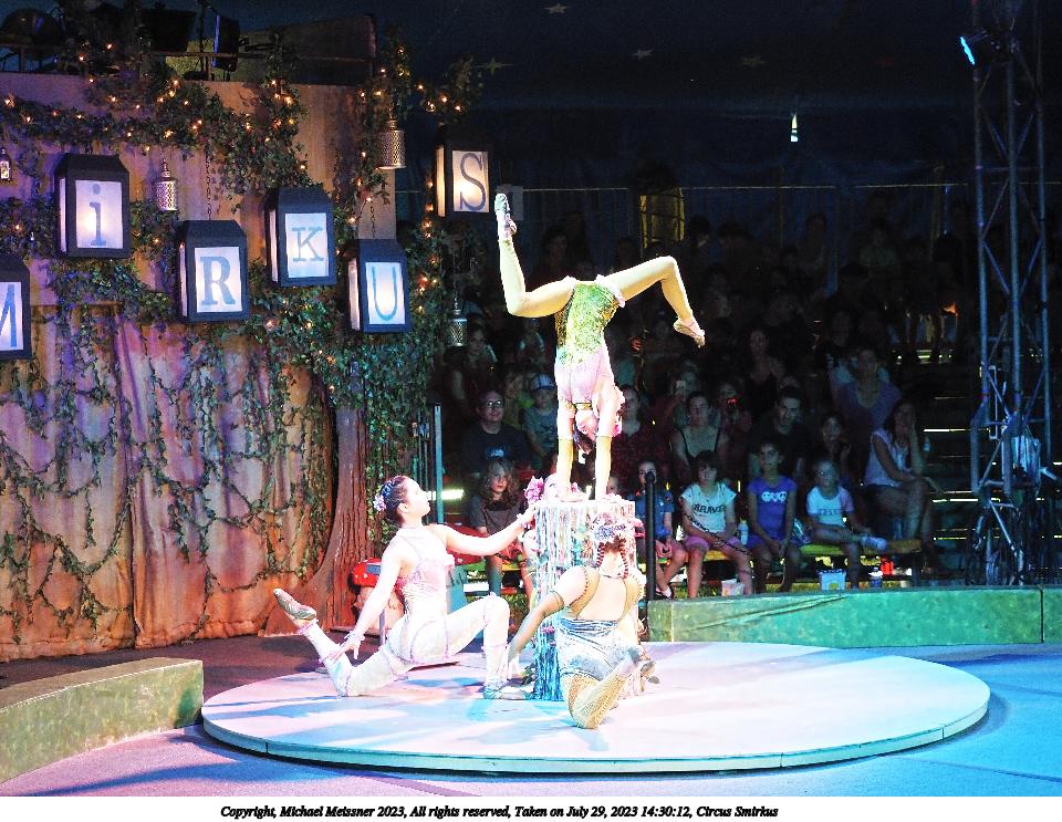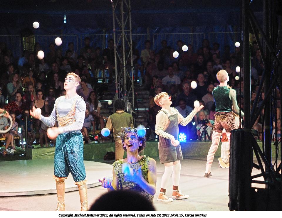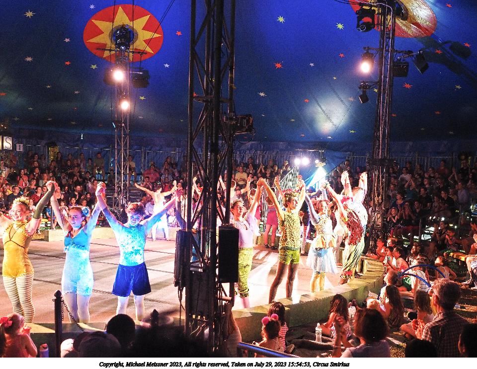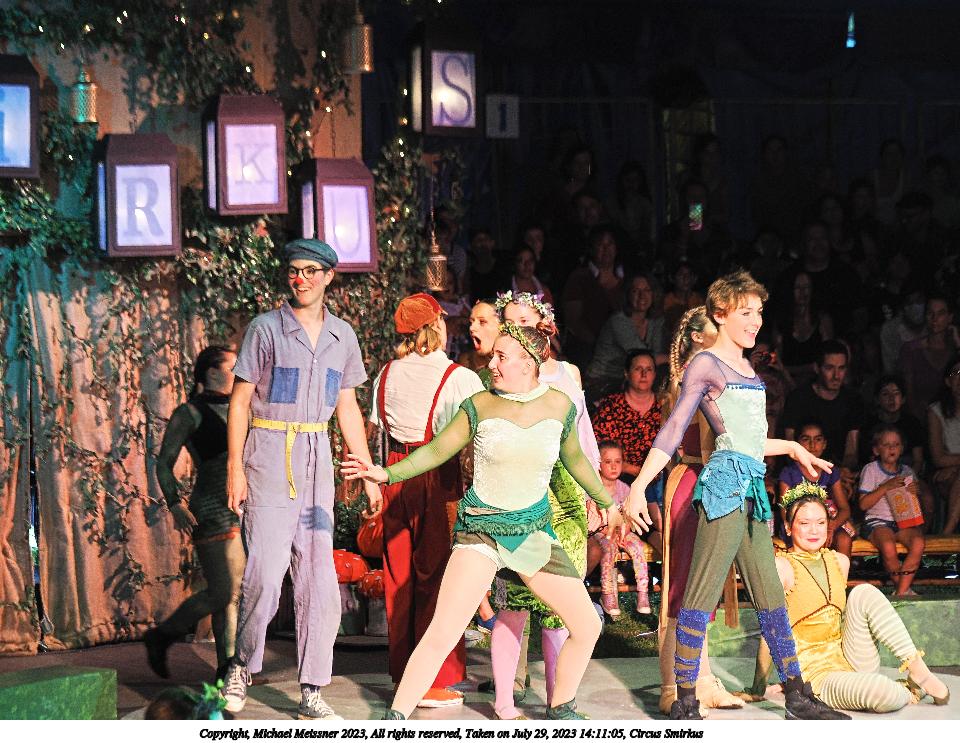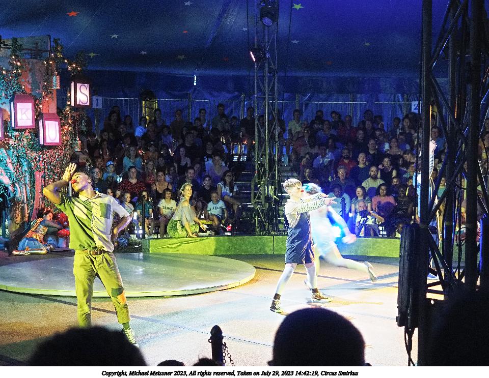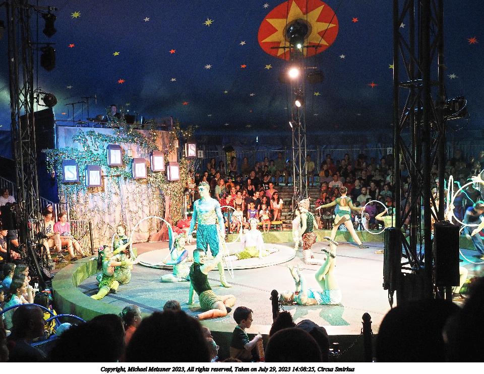 Picture #8: Circus Smirkus #8 Thumb: 480x360, 55,748 bytes (55K) Small: 960x743, 140,315 bytes (138K), (html file) Large: 4800x3600, 3,969,398 bytes (3.8M), (html file) Copyright, Michael Meissner 2023, All rights reserved OM OM1 camera with Olympus 50-200mm lens f/2.8, ISO 800, 1/125 sec, 50.0mm, auto mode, vivid color, matrix metering, continous focus, IS Auto, face detection, anti-shock 35mm equivalent focal length 100.0mm Programs used: crop, raw therapee Taken by Michael Meissner on July 29, 2023 14:12:47 Last modified on December 27, 2023 at 00:00 |