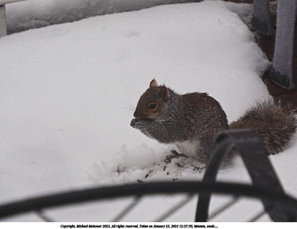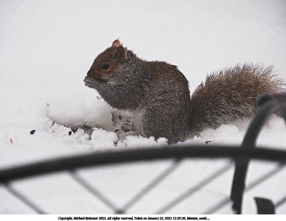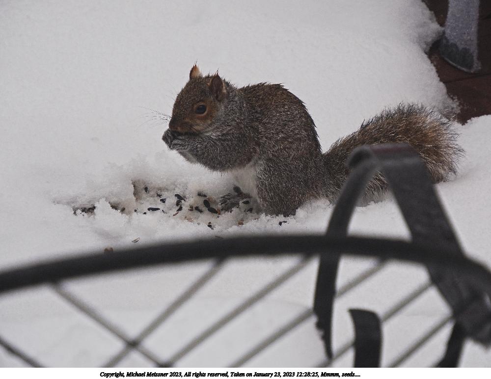 Picture #4: Mmmm, seeds.... #3 1000x773, 107,838 bytes (106K), (html file) Copyright, Michael Meissner 2023, All rights reserved Olympus E-M5-III camera with Olympus-m43 12-200mm f/3.5-6.3 lens f/6.3, ISO 800, 1/320 sec, 137.0mm, auto mode, vivid color, matrix metering, IS Auto, anti-shock 35mm equivalent focal length 274.0mm Programs used: crop, raw therapee Taken by Michael Meissner on January 23, 2023 12:29:30 Last modified on May 20, 2023 at 20:52 This picture is one of my favorites. |