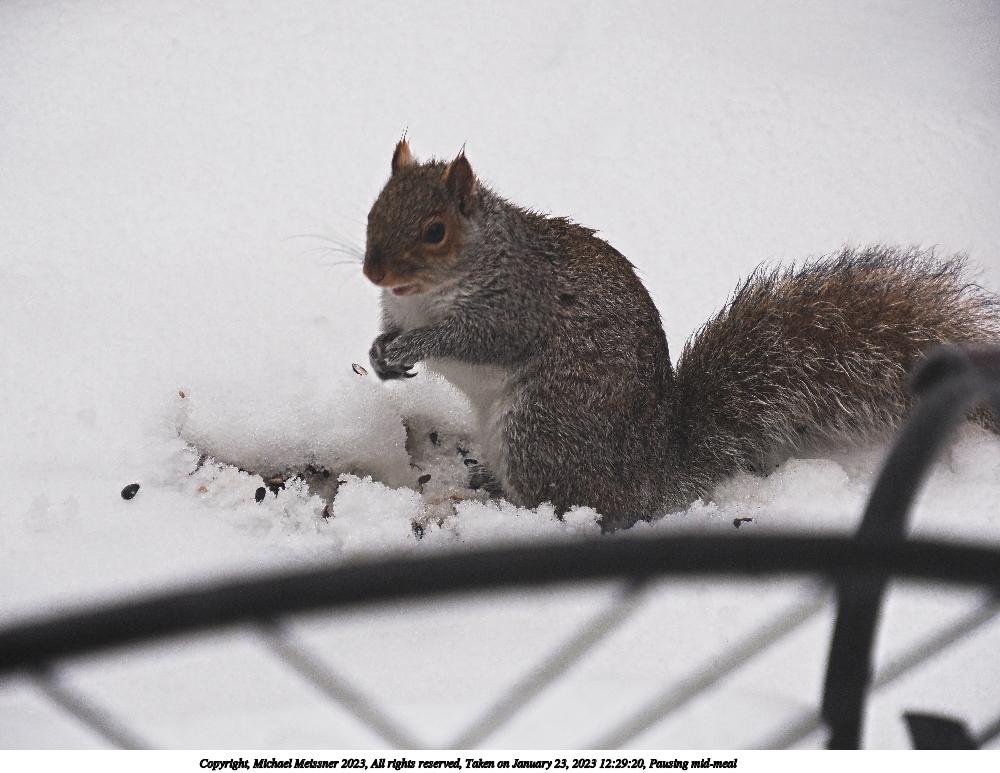 Picture #6: Pausing mid-meal 1000x773, 107,541 bytes (106K), (html file) Copyright, Michael Meissner 2023, All rights reserved Olympus E-M5-III camera with Olympus-m43 12-200mm f/3.5-6.3 lens f/6.3, ISO 640, 1/320 sec, 137.0mm, auto mode, vivid color, matrix metering, IS Auto, anti-shock 35mm equivalent focal length 274.0mm Programs used: crop, raw therapee Taken by Michael Meissner on January 23, 2023 12:29:20 Last modified on May 20, 2023 at 20:52 This picture is one of my favorites. |