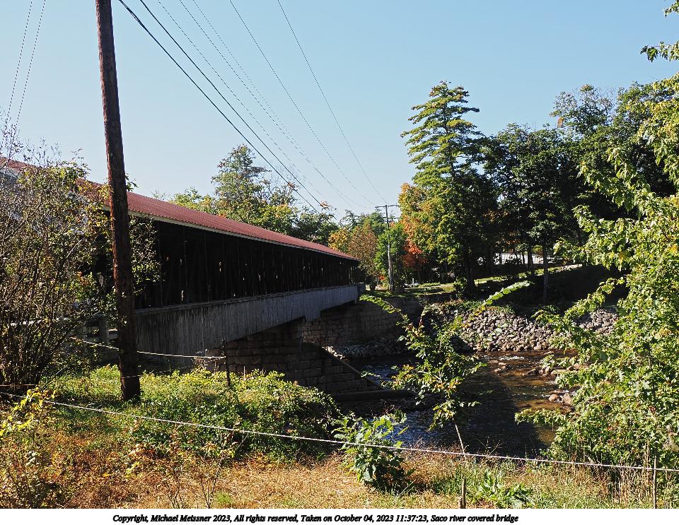 Picture #125: Saco river covered bridge 960x743, 108,746 bytes (107K), (html file) Copyright, Michael Meissner 2023, All rights reserved OM OM1 camera with Olympus-m43 12-200mm f/3.5-6.3 lens f/8.0, ISO 200, 1/200 sec, 40.0mm, aperture priority, vivid color, matrix metering, continous focus, IS Auto, anti-shock 35mm equivalent focal length 80.0mm Programs used: crop, raw therapee Taken by Michael Meissner on October 04, 2023 11:30:32 Last modified on October 07, 2023 at 18:44 |