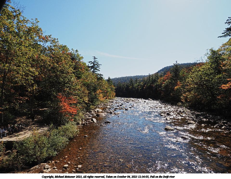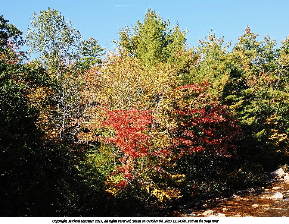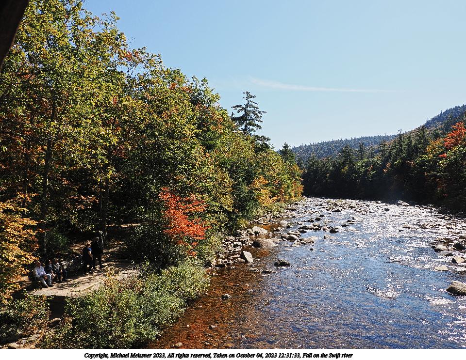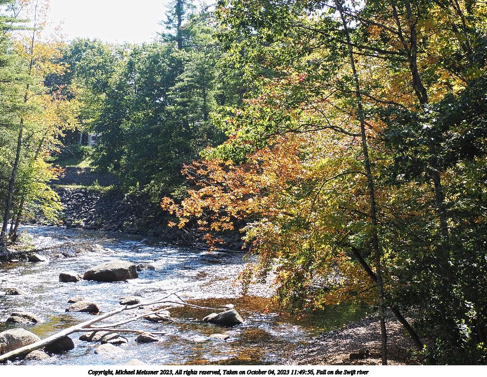 Picture #109: Fall on the Swift river #4 960x743, 314,449 bytes (308K), (html file) Copyright, Michael Meissner 2023, All rights reserved OM OM1 camera with Olympus-m43 12-200mm f/3.5-6.3 lens f/7.1, ISO 200, 1/250 sec, 25.0mm, auto mode, vivid color, matrix metering, continous focus, IS Auto, anti-shock 35mm equivalent focal length 50.0mm Programs used: crop, gimp, raw therapee Taken by Michael Meissner on October 04, 2023 12:34:00 Last modified on October 07, 2023 at 18:57 |