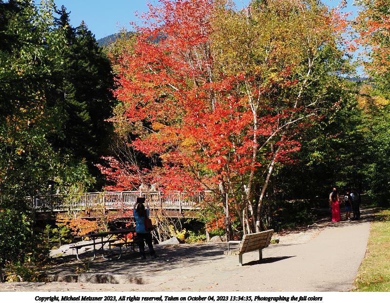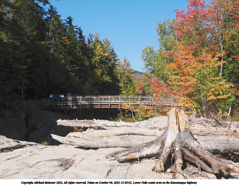 Picture #87: Lower Falls scenic area on the Kancamagus highway 900x910, 224,564 bytes (220K), (html file) Copyright, Michael Meissner 2023, All rights reserved OM OM1 camera with Olympus-m43 12-200mm f/3.5-6.3 lens f/8.0, ISO 200, 1/400 sec, 20.0mm, auto mode, vivid color, matrix metering, continous focus, IS Auto 35mm equivalent focal length 40.0mm Programs used: crop, gimp, raw therapee Taken by Michael Meissner on October 04, 2023 13:35:43 Last modified on October 07, 2023 at 22:44 |