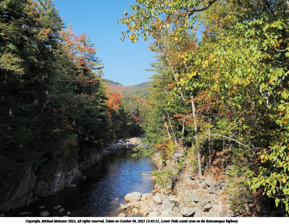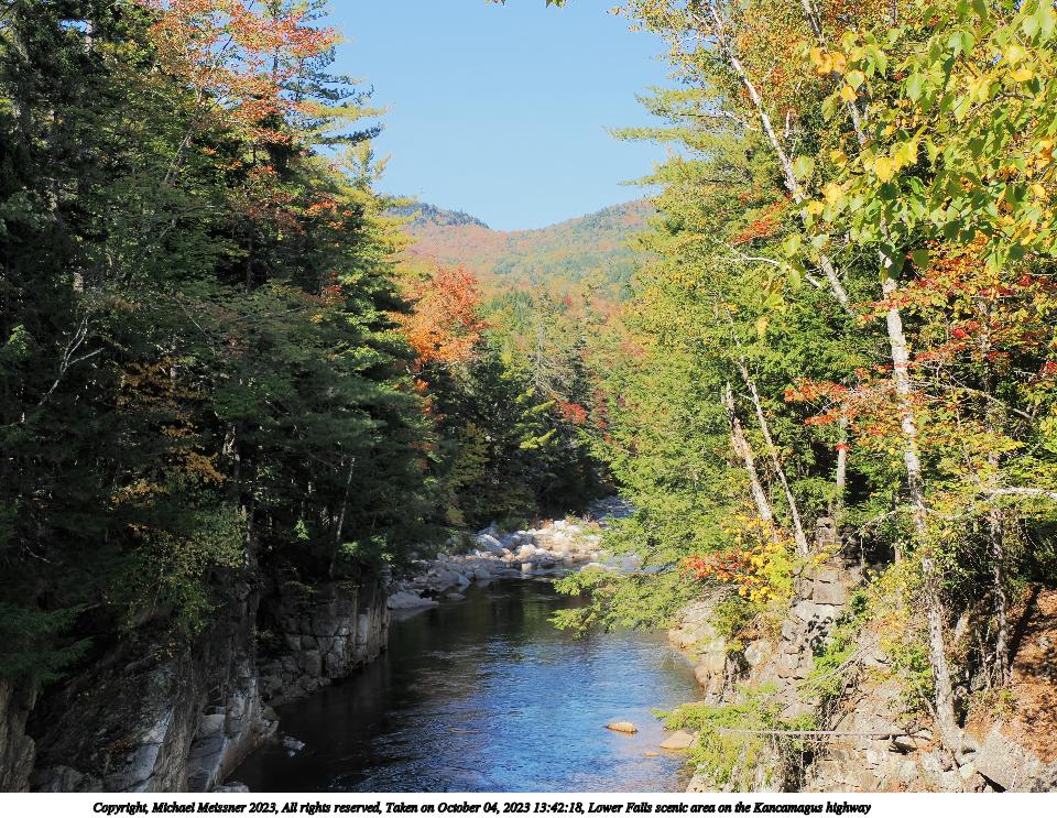 Picture #86: Lower Falls scenic area on the Kancamagus highway #2 960x743, 245,882 bytes (241K), (html file) Copyright, Michael Meissner 2023, All rights reserved OM OM1 camera with Olympus-m43 12-200mm f/3.5-6.3 lens f/7.1, ISO 200, 1/400 sec, 15.0mm, auto mode, vivid color, matrix metering, continous focus, IS Auto 35mm equivalent focal length 30.0mm Programs used: crop, gimp, raw therapee Taken by Michael Meissner on October 04, 2023 13:36:01 Last modified on October 07, 2023 at 22:46 |