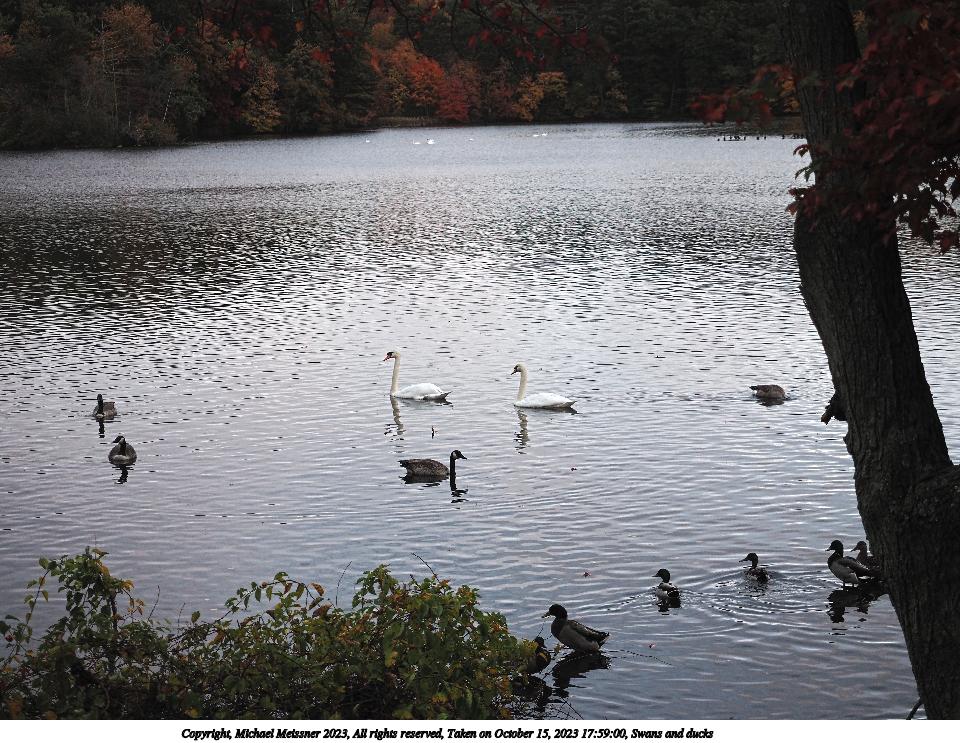 Picture #33: Swans and ducks #4 960x743, 175,155 bytes (172K), (html file) Olympus E-M5-III camera with Olympus-m43 12-40mm f/2.8 lens f/2.8, ISO 640, 1/80 sec, 40.0mm, auto mode, vivid color, SHQ, center weight metering, IS Auto, face detection, anti-shock 35mm equivalent focal length 80.0mm Programs used: crop, raw therapee Taken by Michael Meissner on October 15, 2023 18:00:04 Last modified on October 29, 2023 at 20:47 |