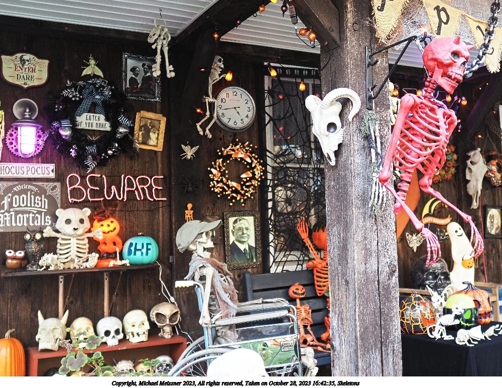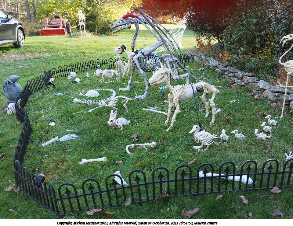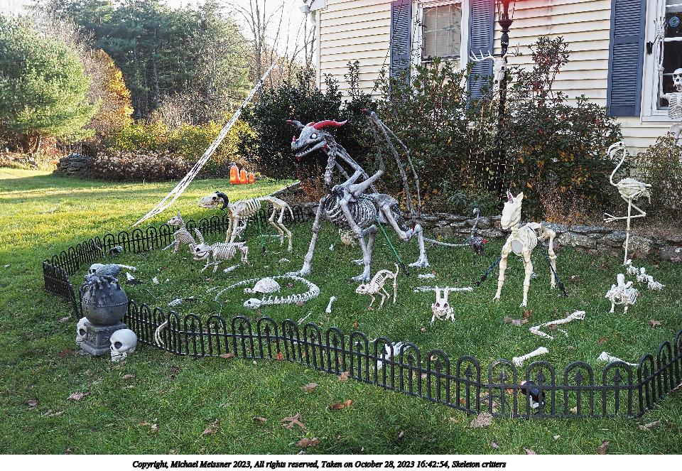 Picture #30: Skeleton critters 960x663, 291,241 bytes (285K), (html file) Copyright, Michael Meissner 2023, All rights reserved Olympus E-M1-II camera with Sigma 16mm f/1.4 lens f/2.8, ISO 200, flash, 1/250 sec, 16.0mm, auto mode, natural color, SHQ, matrix metering, continous focus, IS Auto, both eyes priority, face detection, anti-shock 35mm equivalent focal length 32.0mm Programs used: crop, raw therapee Taken by Michael Meissner on October 28, 2023 16:42:54 Last modified on October 30, 2023 at 02:35 |