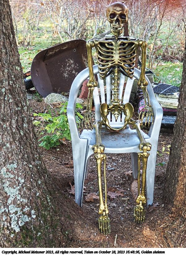 Picture #15: Golden skeleton 600x823, 211,052 bytes (207K), (html file) Copyright, Michael Meissner 2023, All rights reserved Olympus E-M1-II camera with Sigma 16mm f/1.4 lens f/1.8, ISO 200, 1/100 sec, 16.0mm, auto mode, natural color, SHQ, matrix metering, continous focus, IS Auto, both eyes priority, face detection, anti-shock 35mm equivalent focal length 32.0mm Programs used: crop, raw therapee Taken by Michael Meissner on October 28, 2023 16:48:36 Last modified on October 30, 2023 at 02:44 |