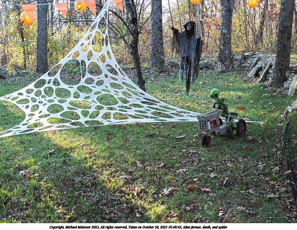 Picture #14: Alien farmer, death, and spider 1000x773, 376,297 bytes (368K), (html file) Copyright, Michael Meissner 2023, All rights reserved Olympus E-M1-II camera with Sigma 16mm f/1.4 lens f/2.2, ISO 200, 1/160 sec, 16.0mm, auto mode, natural color, SHQ, matrix metering, continous focus, IS Auto, both eyes priority, face detection, anti-shock 35mm equivalent focal length 32.0mm Programs used: crop, raw therapee Taken by Michael Meissner on October 28, 2023 16:48:43 Last modified on October 30, 2023 at 02:45 |