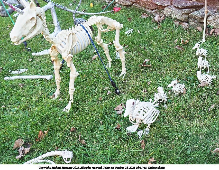 Picture #6: Skeleton ducks 900x698, 299,281 bytes (293K), (html file) Copyright, Michael Meissner 2023, All rights reserved Olympus E-M1-II camera with Sigma 16mm f/1.4 lens f/2.2, ISO 200, 1/160 sec, 16.0mm, auto mode, natural color, SHQ, matrix metering, continous focus, IS Auto, both eyes priority, face detection, anti-shock 35mm equivalent focal length 32.0mm Programs used: crop, raw therapee Taken by Michael Meissner on October 28, 2023 16:51:43 Last modified on October 30, 2023 at 02:52 |