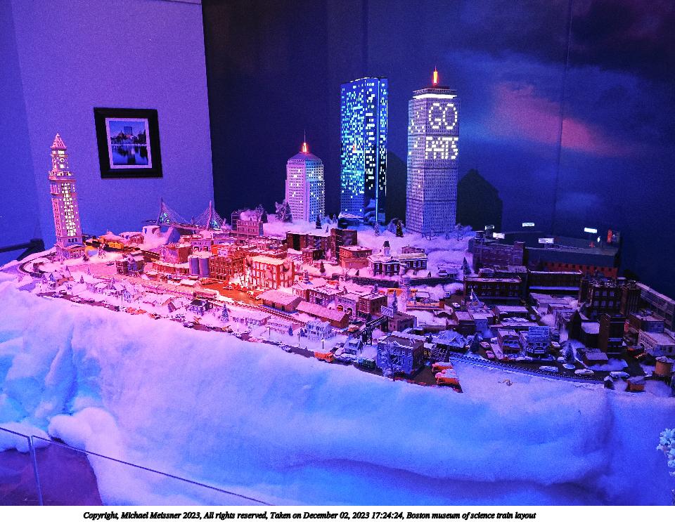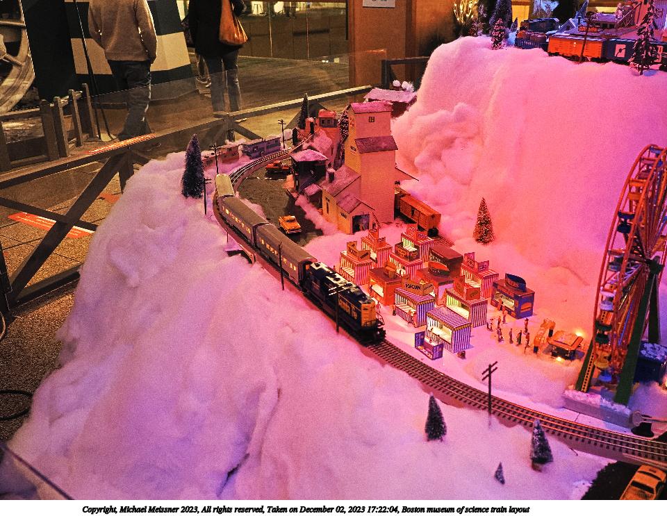 Picture #119: Boston museum of science train layout 960x743, 180,168 bytes (176K), (html file) Copyright, Michael Meissner 2023, All rights reserved OM OM1 camera with Olympus-m43 12-40mm f/2.8 lens f/2.8, ISO 3200, 1/125 sec, 17.0mm, auto mode, vivid color, matrix metering, continous focus, IS Auto, anti-shock 35mm equivalent focal length 34.0mm Programs used: crop, raw therapee Taken by Michael Meissner on December 02, 2023 17:22:04 Last modified on December 22, 2023 at 00:34 |