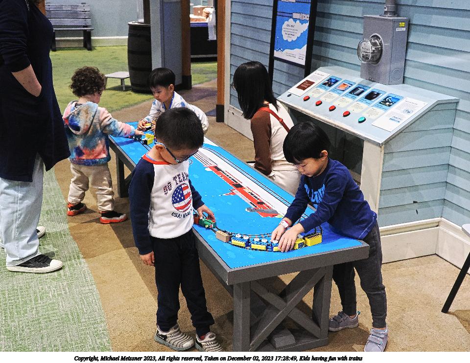 Picture #109: Kids having fun with trains 960x743, 190,705 bytes (187K), (html file) Copyright, Michael Meissner 2023, All rights reserved OM OM1 camera with Olympus-m43 12-40mm f/2.8 lens f/2.8, ISO 3200, 1/125 sec, 21.0mm, auto mode, vivid color, matrix metering, continous focus, IS Auto, subject trains (not found), anti-shock 35mm equivalent focal length 42.0mm Programs used: crop, raw therapee Taken by Michael Meissner on December 02, 2023 17:28:49 Last modified on December 22, 2023 at 00:39 |