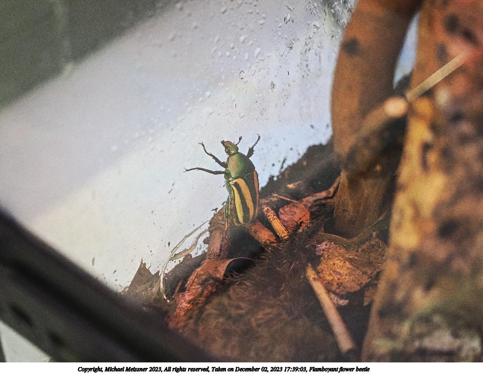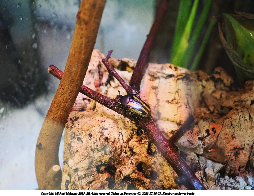Picture #94: Flamboyant flower beetle #3 960x743, 127,983 bytes (125K), (html file) Copyright, Michael Meissner 2023, All rights reserved OM OM1 camera with Olympus-m43 12-40mm f/2.8 lens f/2.8, ISO 4000, 1/125 sec, 40.0mm, auto mode, vivid color, matrix metering, continous focus, IS Auto, anti-shock 35mm equivalent focal length 80.0mm Programs used: crop, raw therapee Taken by Michael Meissner on December 02, 2023 17:39:03 Last modified on December 22, 2023 at 00:49 |