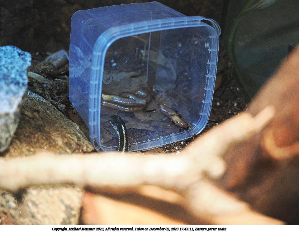 Picture #92: Eastern garter snake 960x743, 123,676 bytes (121K), (html file) Copyright, Michael Meissner 2023, All rights reserved OM OM1 camera with Olympus-m43 12-40mm f/2.8 lens f/2.8, ISO 1250, 1/125 sec, 40.0mm, auto mode, vivid color, matrix metering, continous focus, IS Auto, anti-shock 35mm equivalent focal length 80.0mm Programs used: crop, raw therapee Taken by Michael Meissner on December 02, 2023 17:43:11 Last modified on December 22, 2023 at 00:51 |