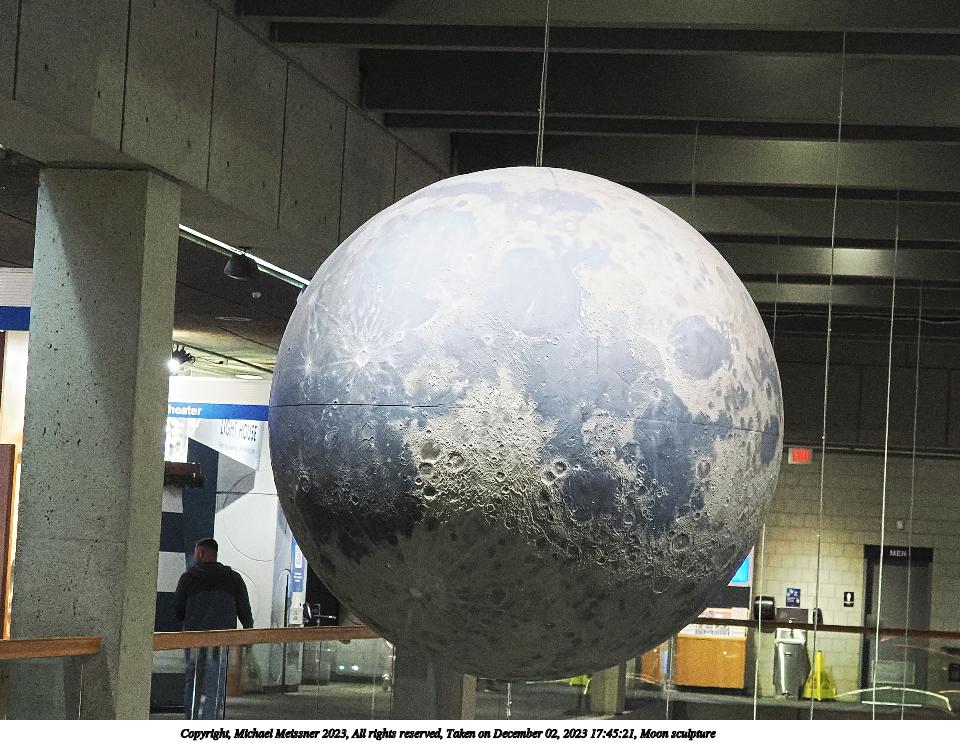 Picture #86: Moon sculpture 960x743, 152,664 bytes (150K), (html file) Copyright, Michael Meissner 2023, All rights reserved OM OM1 camera with Olympus-m43 12-40mm f/2.8 lens f/2.8, ISO 3200, 1/125 sec, 23.0mm, auto mode, vivid color, matrix metering, digital zoom x2, continous focus, IS Auto, anti-shock 35mm equivalent focal length 92.0mm, digital zoom x2 Programs used: crop, raw therapee Taken by Michael Meissner on December 02, 2023 17:45:21 Last modified on December 22, 2023 at 00:55 |