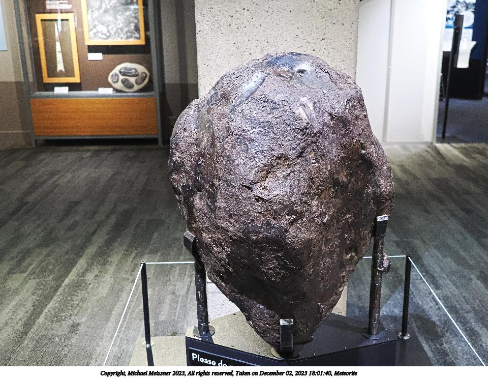 Picture #44: Meteorite 960x743, 195,729 bytes (192K), (html file) Copyright, Michael Meissner 2023, All rights reserved OM OM1 camera with Olympus-m43 12-40mm f/2.8 lens f/2.8, ISO 4000, 1/125 sec, 19.0mm, auto mode, vivid color, matrix metering, bias -0.3, continous focus, IS Auto, anti-shock 35mm equivalent focal length 38.0mm Programs used: crop, raw therapee Taken by Michael Meissner on December 02, 2023 18:01:40 Last modified on December 23, 2023 at 02:24 |
