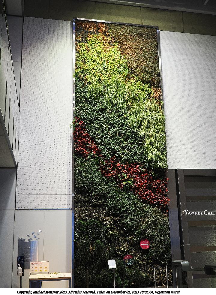 Picture #37: Vegetation mural 720x983, 238,606 bytes (234K), (html file) Copyright, Michael Meissner 2023, All rights reserved OM OM1 camera with Olympus-m43 12-40mm f/2.8 lens f/2.8, ISO 500, 1/125 sec, 19.0mm, auto mode, vivid color, matrix metering, bias -0.3, continous focus, IS Auto, anti-shock 35mm equivalent focal length 38.0mm Programs used: crop, raw therapee, rotate left Taken by Michael Meissner on December 02, 2023 18:05:04 Last modified on December 23, 2023 at 02:29 |