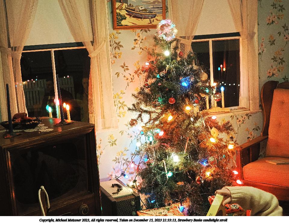 Picture #9: Strawbery Banke candlelight stroll #6 960x743, 193,253 bytes (189K), (html file) Copyright, Michael Meissner 2023, All rights reserved OM OM1 camera with Olympus-m43 12-40mm f/2.8 lens f/2.8, ISO 6400, 1/125 sec, 12.0mm, auto mode, vivid color, matrix metering, bias -0.3, continous focus, IS Auto, anti-shock 35mm equivalent focal length 24.0mm Programs used: crop, raw therapee Taken by Michael Meissner on December 15, 2023 21:32:17 Last modified on December 24, 2023 at 21:22 |
