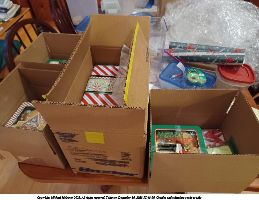 Picture #120: Cookies and calendars ready to ship 1000x773, 97,347 bytes (96K), (html file) Copyright, Michael Meissner 2023, All rights reserved Samsung A32 5G phone f/1.8, ISO 2500, 1/11 sec, 4.6mm, auto mode, center weight metering 35mm equivalent focal length 25.0mm Programs used: crop, gimp Taken by Michael Meissner on December 18, 2023 15:43:58 Last modified on December 18, 2023 at 21:18 |