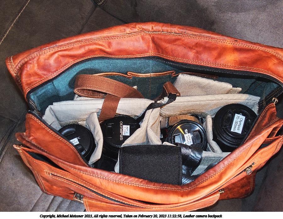 Picture #31: Leather camera backpack #3 900x698, 182,024 bytes (178K), (html file) Copyright, Michael Meissner 2023, All rights reserved Olympus Stylus-1 camera f/2.8, ISO 400, flash, 1/40 sec, 8.1mm, auto mode, natural color, center weight metering, IS Auto, noise reduction auto 35mm equivalent focal length 38.0mm Programs used: crop, raw therapee Taken by Michael Meissner on February 20, 2023 11:22:58 Last modified on May 20, 2023 at 20:27 |