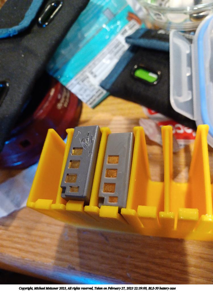 Picture #25: BLS-50 battery case #2 750x1023, 60,174 bytes (59K), (html file) Copyright, Michael Meissner 2023, All rights reserved Samsung A32 5G phone f/1.8, ISO 1250, 1/15 sec, 4.6mm, auto mode, spot metering 35mm equivalent focal length 25.0mm Programs used: rotate right Taken by Michael Meissner on February 27, 2023 21:39:56 Last modified on May 20, 2023 at 20:27 |