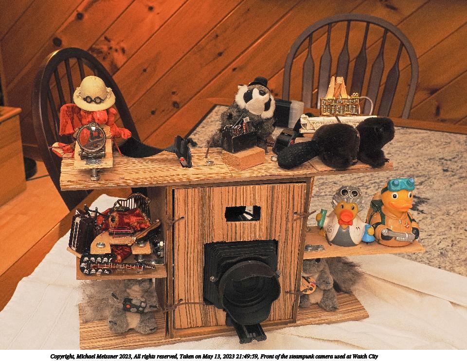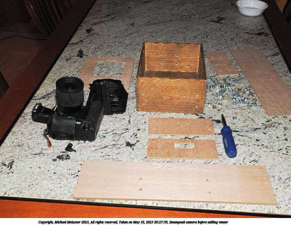 Picture #22: Steampunk camera before adding veneer 960x743, 197,440 bytes (193K), (html file) Copyright, Michael Meissner 2023, All rights reserved OM OM1 camera with Olympus-m43 12-40mm f/2.8 lens f/5.6, ISO 200, FL-900R flash, 1/60 sec, 19.0mm, aperture priority, vivid color, matrix metering, IS Auto, anti-shock 35mm equivalent focal length 38.0mm Programs used: crop, gimp, raw therapee Taken by Michael Meissner on May 10, 2023 20:27:59 Last modified on May 20, 2023 at 20:27 |