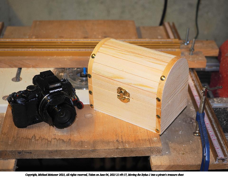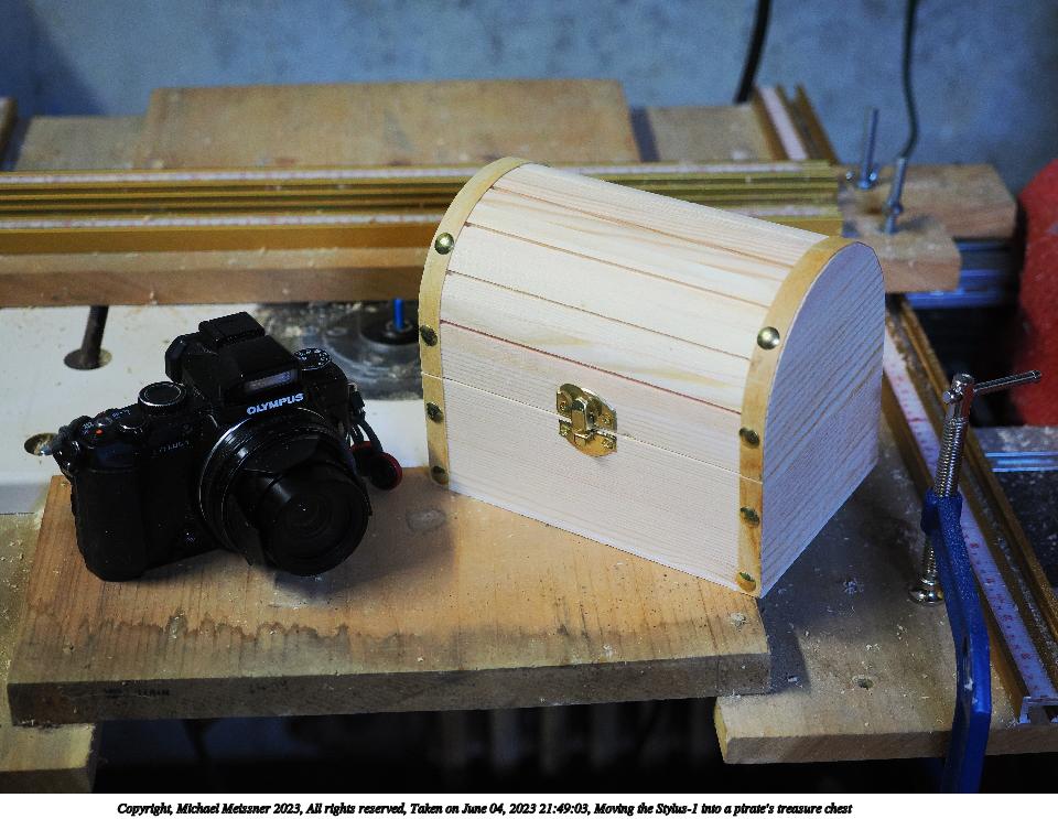 Picture #18: Moving the Stylus-1 into a pirate's treasure chest #2 960x743, 127,875 bytes (125K), (html file) Copyright, Michael Meissner 2023, All rights reserved OM OM1 camera with Olympus-m43 12-40mm f/2.8 lens f/2.8, ISO 200, flash, 1/60 sec, 30.0mm, auto mode, vivid color, matrix metering, IS Auto, face detection, anti-shock 35mm equivalent focal length 60.0mm Programs used: crop, gimp, raw therapee Taken by Michael Meissner on June 04, 2023 21:49:17 Last modified on June 24, 2023 at 22:22 |