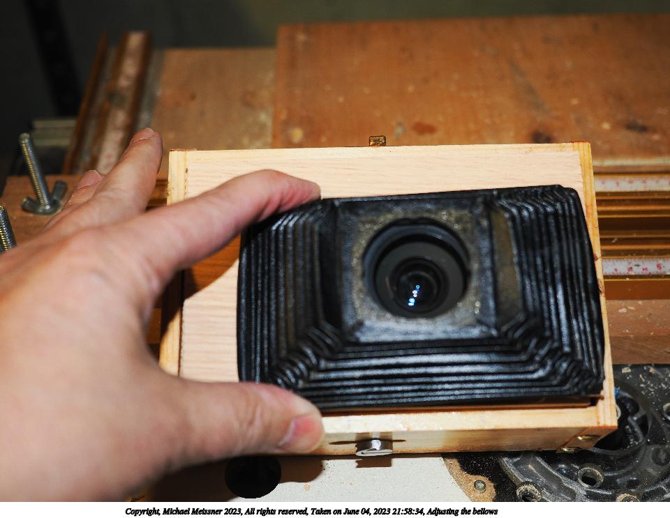 Picture #13: Adjusting the bellows 960x743, 106,499 bytes (105K), (html file) Copyright, Michael Meissner 2023, All rights reserved OM OM1 camera with Olympus-m43 12-40mm f/2.8 lens f/2.8, ISO 200, flash, 1/60 sec, 22.0mm, auto mode, vivid color, matrix metering, IS Auto, face detection, anti-shock 35mm equivalent focal length 44.0mm Programs used: crop, raw therapee Taken by Michael Meissner on June 04, 2023 21:58:34 Last modified on June 24, 2023 at 22:26 |