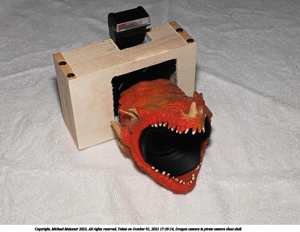 Picture #8: Dragon camera in pirate camera chest shell 960x743, 142,501 bytes (140K), (html file) Copyright, Michael Meissner 2023, All rights reserved OM OM1 camera with Olympus-m43 12-40mm f/2.8 lens f/8.0, ISO 200, FL-900R flash, fp-ttl, 1/60 sec, 26.0mm, aperture priority, vivid color, matrix metering, continous focus, IS Auto, anti-shock 35mm equivalent focal length 52.0mm Programs used: crop, gimp, raw therapee Taken by Michael Meissner on October 01, 2023 17:39:14 Last modified on October 01, 2023 at 20:00 |