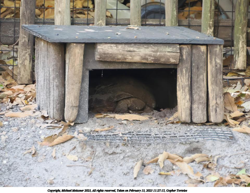 Picture #2: Gopher Tortoise #2 960x743, 152,423 bytes (149K), (html file) Copyright, Michael Meissner 2023, All rights reserved OM OM1 camera with Olympus-m43 12-200mm f/3.5-6.3 lens f/6.3, ISO 6400, 1/125 sec, 178.0mm, auto mode, vivid color, center weight metering, IS Auto, anti-shock 35mm equivalent focal length 357.0mm Programs used: crop, gimp, raw therapee Taken by Michael Meissner on February 13, 2023 11:27:15 Last modified on May 20, 2023 at 20:57 |