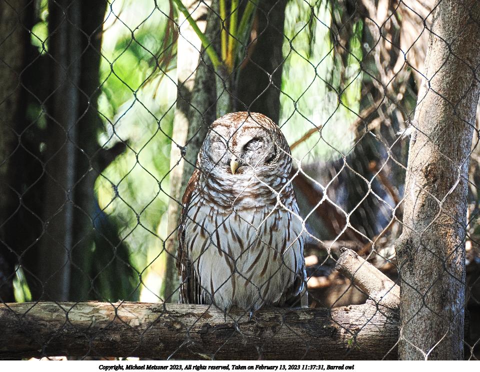 Picture #1: Barred owl 960x743, 203,812 bytes (200K), (html file) Copyright, Michael Meissner 2023, All rights reserved OM OM1 camera with Olympus-m43 12-200mm f/3.5-6.3 lens f/6.3, ISO 800, 1/125 sec, 200.0mm, auto mode, vivid color, center weight metering, auto + manual focus, IS Auto, anti-shock 35mm equivalent focal length 401.0mm Programs used: crop, raw therapee Taken by Michael Meissner on February 13, 2023 11:37:31 Last modified on May 20, 2023 at 20:57 |