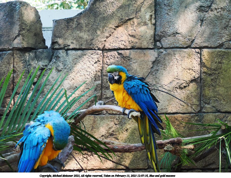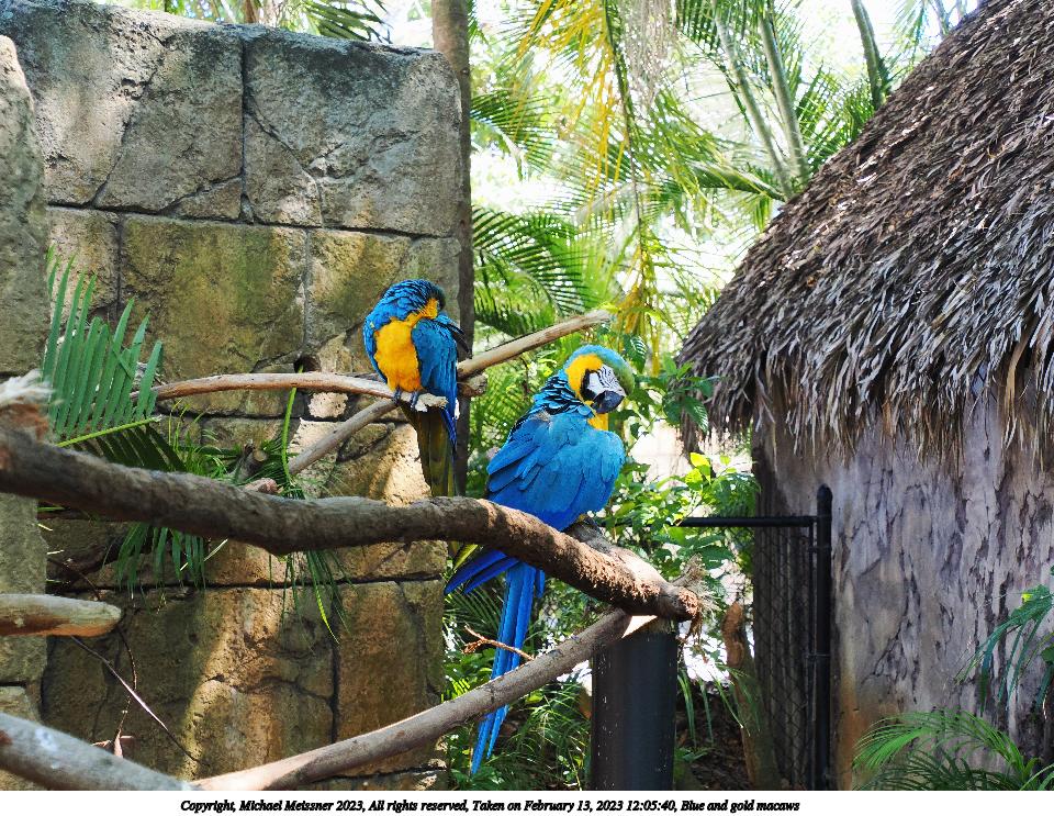 Picture #2: Blue and gold macaws #2 960x743, 243,284 bytes (238K), (html file) Copyright, Michael Meissner 2023, All rights reserved OM OM1 camera with Olympus-m43 12-200mm f/3.5-6.3 lens f/5.7, ISO 2000, 1/125 sec, 50.0mm, auto mode, vivid color, center weight metering, auto + manual focus, IS Auto, anti-shock 35mm equivalent focal length 100.0mm Programs used: crop, raw therapee Taken by Michael Meissner on February 13, 2023 12:07:16 Last modified on May 20, 2023 at 20:58 |