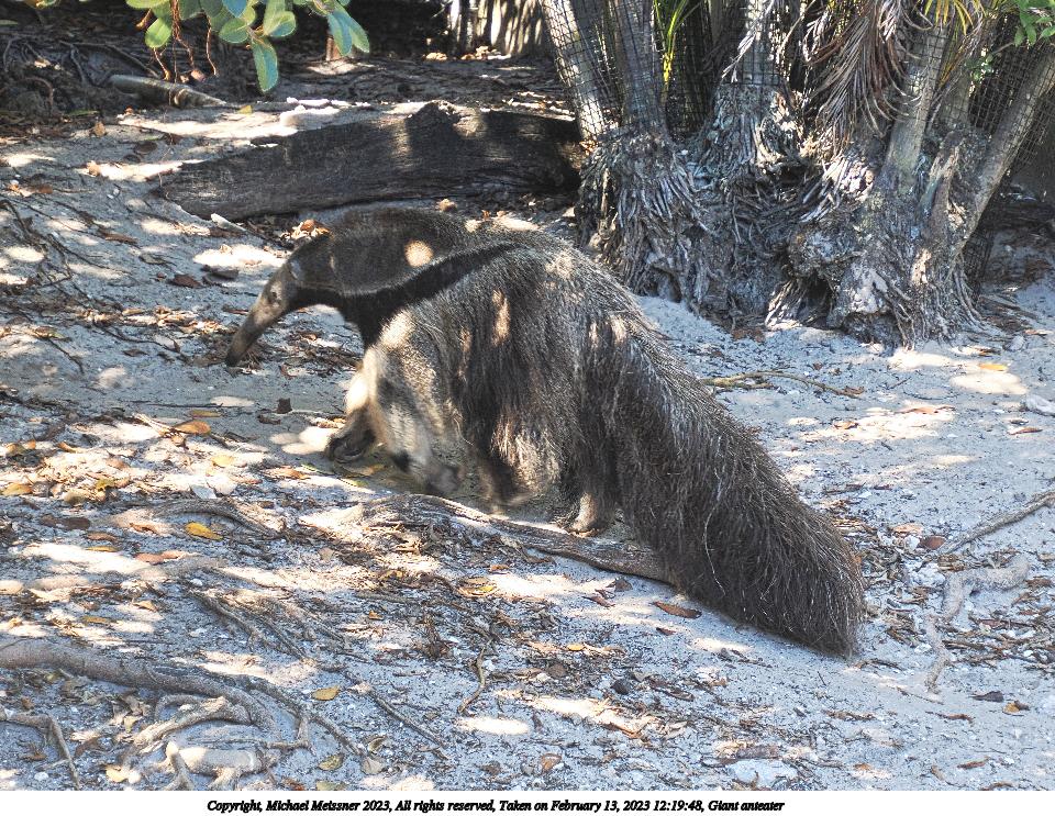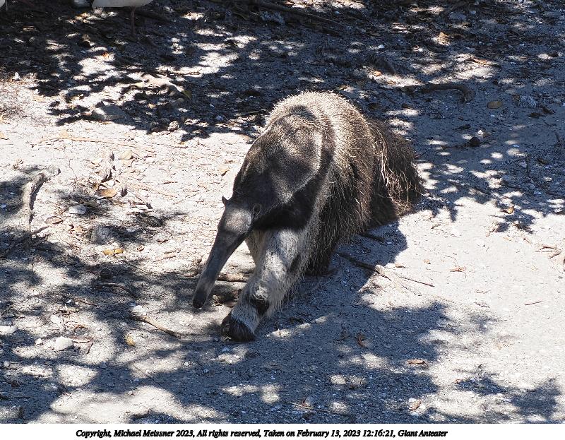 Picture #2: Giant Anteater #2 800x623, 197,766 bytes (194K), (html file) Copyright, Michael Meissner 2023, All rights reserved OM OM1 camera with Olympus-m43 12-200mm f/3.5-6.3 lens f/7.1, ISO 200, 1/250 sec, 40.0mm, auto mode, vivid color, center weight metering, auto + manual focus, IS Auto, anti-shock 35mm equivalent focal length 80.0mm Programs used: crop, gimp, raw therapee Taken by Michael Meissner on February 13, 2023 12:16:21 Last modified on May 20, 2023 at 20:58 |