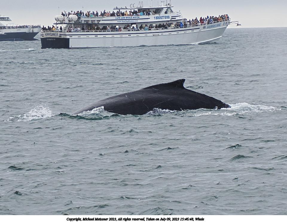 Picture #45: Whales #11 Thumb: 480x360, 60,893 bytes (60K) Small: 960x743, 195,363 bytes (191K), (html file) Copyright, Michael Meissner 2023, All rights reserved OM OM1 camera with Olympus-m43 12-200mm f/3.5-6.3 lens f/6.3, ISO 200, 1/400 sec, 12.0mm, auto mode, vivid color, matrix metering, digital zoom x2, continous focus, IS Auto, face detection 35mm equivalent focal length 48.0mm, digital zoom x2 Programs used: crop, raw therapee Taken by Michael Meissner on July 09, 2023 16:02:23 Last modified on August 20, 2023 at 01:09 |