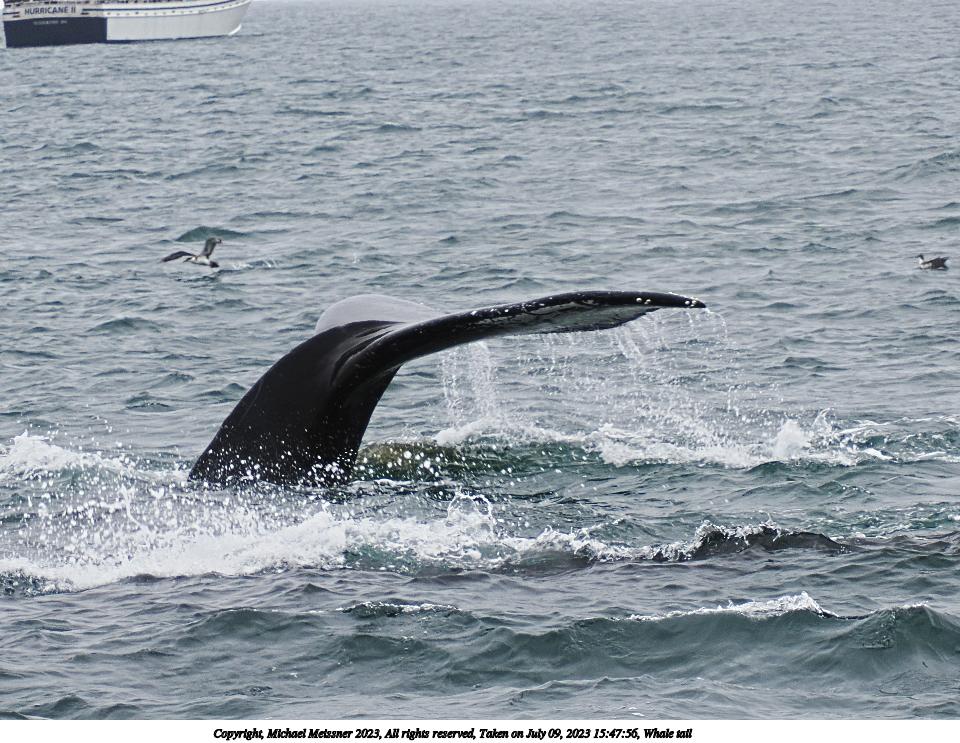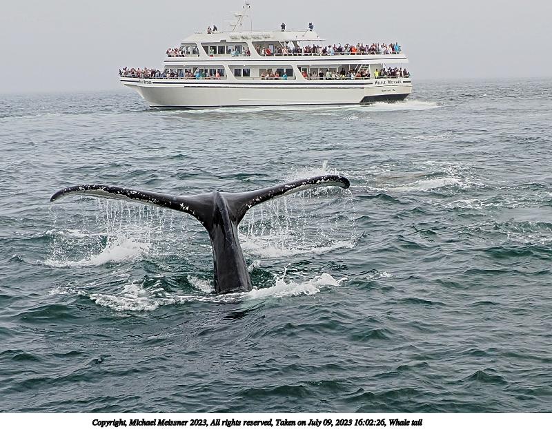 Picture #28: Whale tail #7 Thumb: 480x360, 65,156 bytes (64K) Small: 960x743, 185,151 bytes (181K), (html file) Copyright, Michael Meissner 2023, All rights reserved OM OM1 camera with Olympus-m43 12-200mm f/3.5-6.3 lens f/8.0, ISO 200, 1/250 sec, 75.0mm, auto mode, vivid color, matrix metering, digital zoom x2, continous focus, IS Auto, face detection, anti-shock 35mm equivalent focal length 300.0mm, digital zoom x2 Programs used: crop, raw therapee Taken by Michael Meissner on July 09, 2023 15:47:56 Last modified on August 20, 2023 at 00:46 |