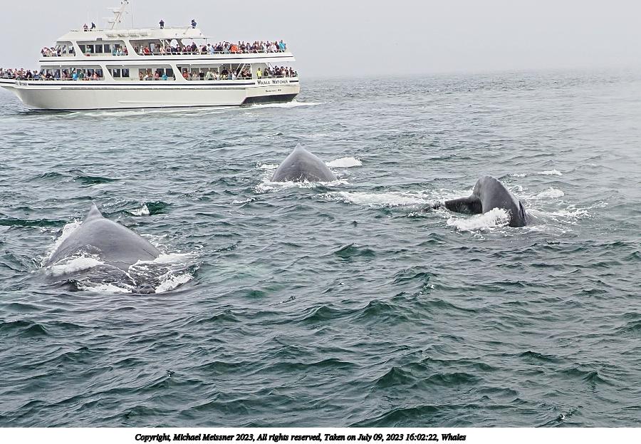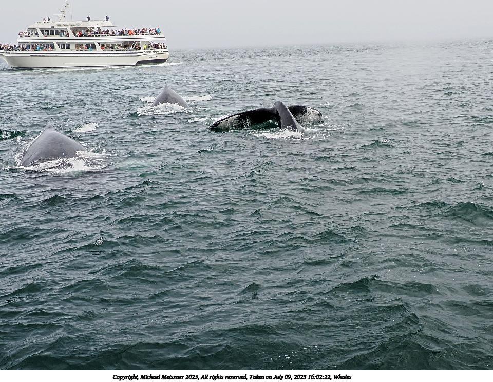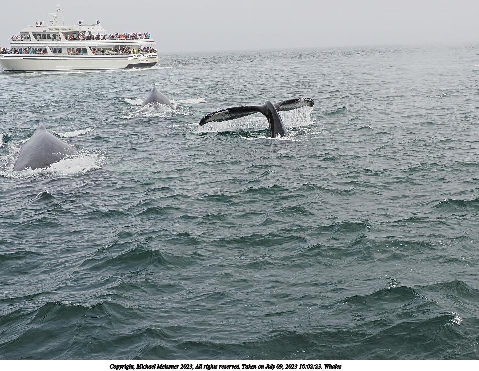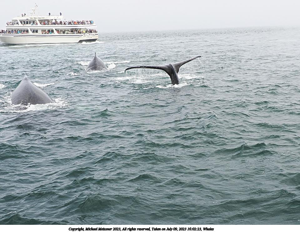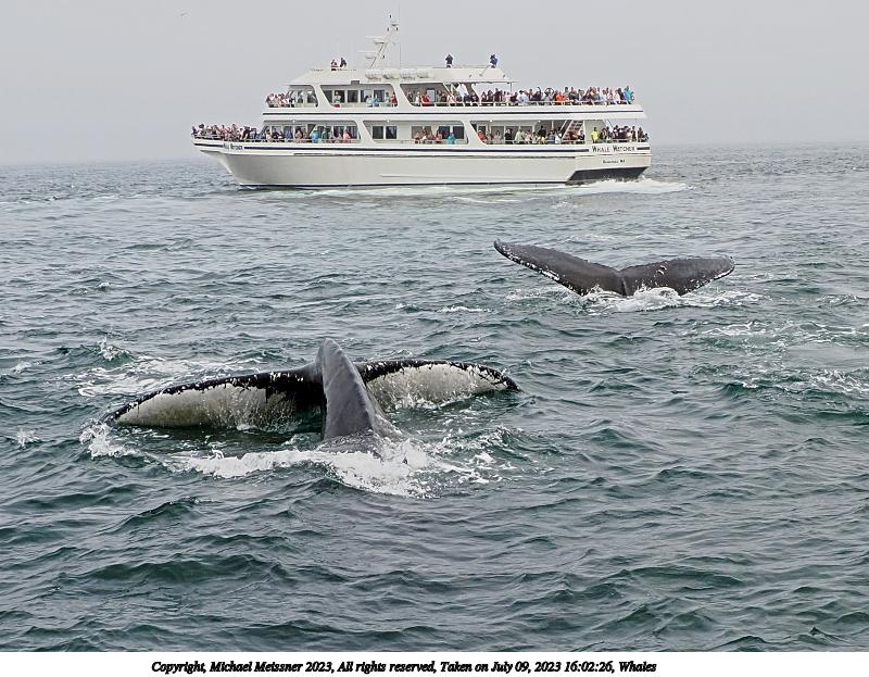 Picture #49: Whales #15 Thumb: 400x300, 52,934 bytes (52K) Small: 800x623, 145,809 bytes (143K), (html file) Copyright, Michael Meissner 2023, All rights reserved OM OM1 camera with Olympus-m43 12-200mm f/3.5-6.3 lens f/6.3, ISO 200, 1/400 sec, 12.0mm, auto mode, vivid color, matrix metering, digital zoom x2, continous focus, IS Auto, face detection 35mm equivalent focal length 48.0mm, digital zoom x2 Programs used: crop, gimp, raw therapee Taken by Michael Meissner on July 09, 2023 16:02:26 Last modified on August 20, 2023 at 01:18 This picture is one of my favorites. |
