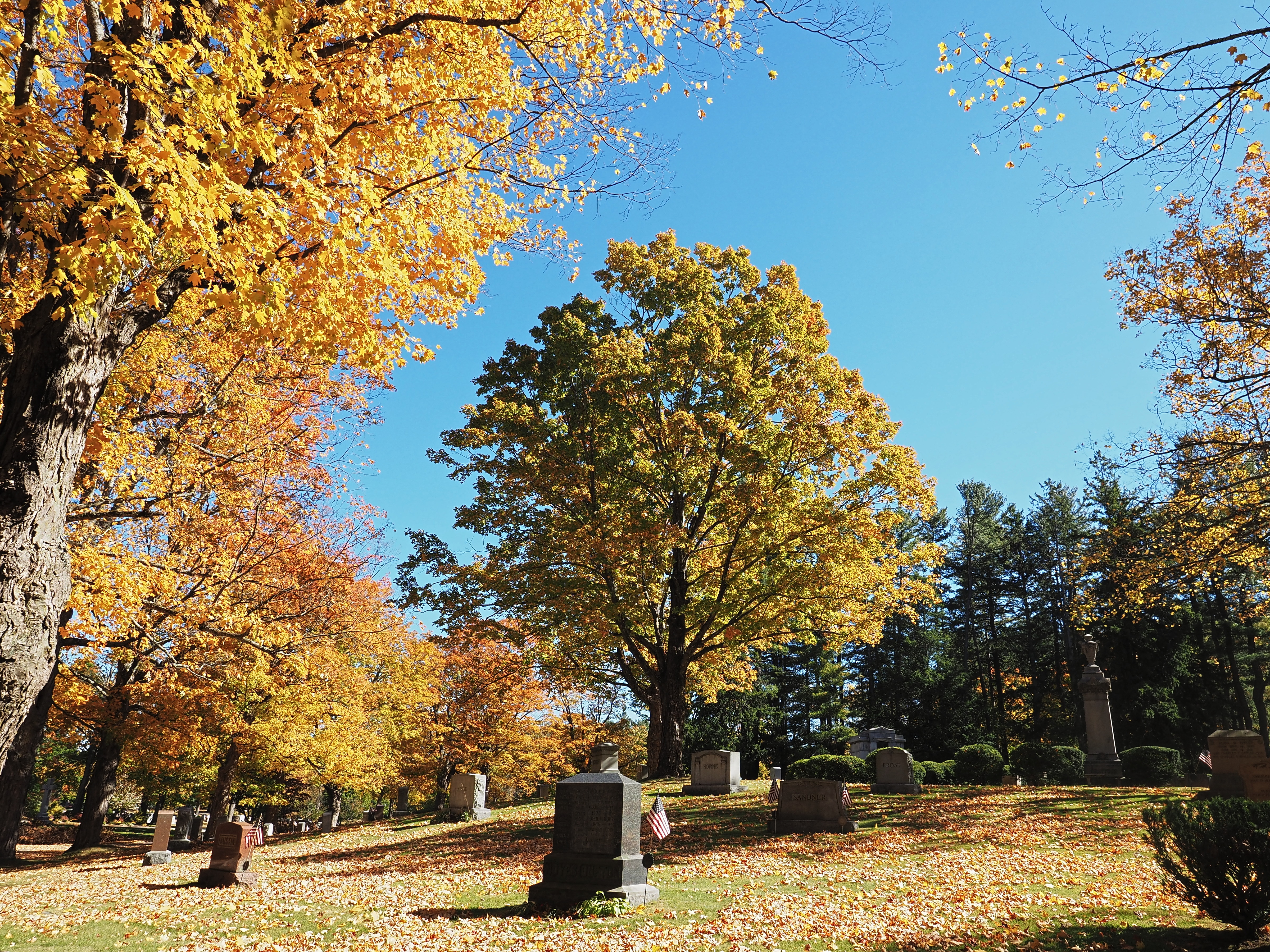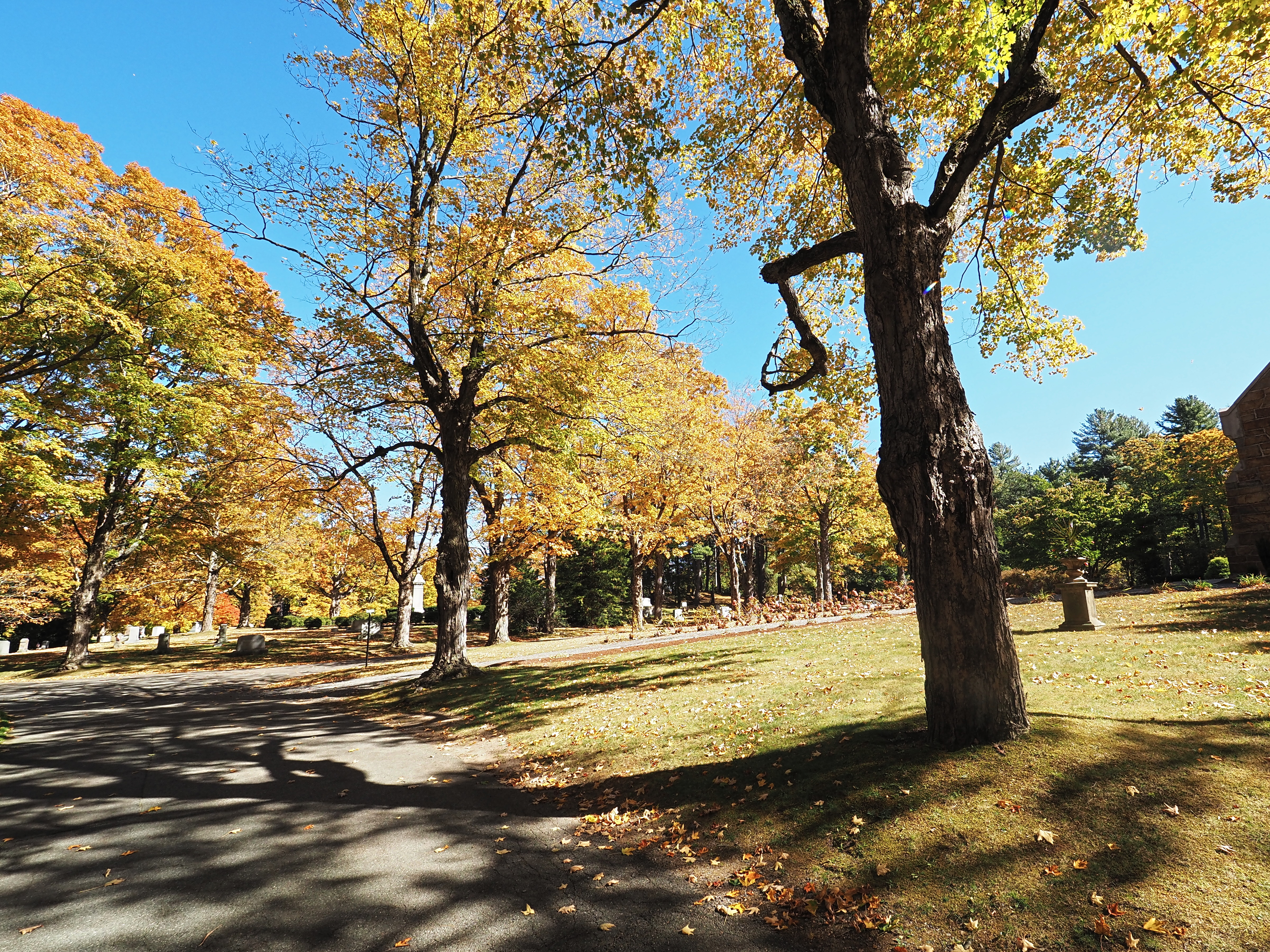 Picture #36: Fall leaves at the West Parish Garden Cemetery #19 Thumb: 480x360, 84,427 bytes (83K) Small: 960x743, 346,190 bytes (339K), (html file) Large: 4800x3600, 9,292,522 bytes (8.9M), (html file) Copyright, Michael Meissner 2024, All rights reserved Olympus E-M5-III camera with Olympus-m43 7-14mm f/2.8 lens f/4.0, ISO 200, 1/125 sec, 7.0mm, auto mode, vivid color, SHQ, matrix metering, bias 0.3, IS Auto, anti-shock 35mm equivalent focal length 14.0mm Programs used: crop, raw therapee Taken by Michael Meissner on October 12, 2024 12:41:51 Last modified on October 13, 2024 at 16:35 This picture is one of my favorites. |