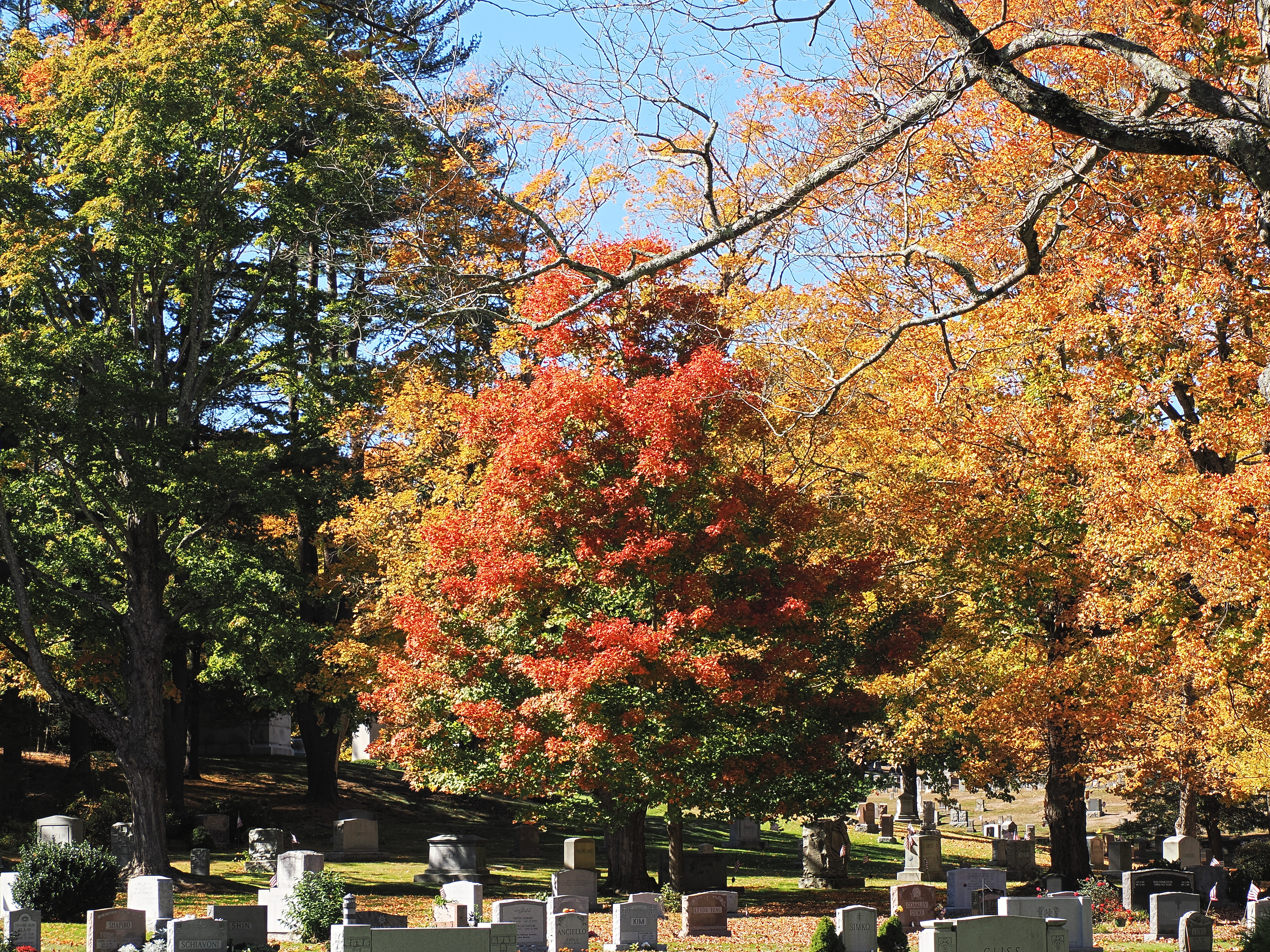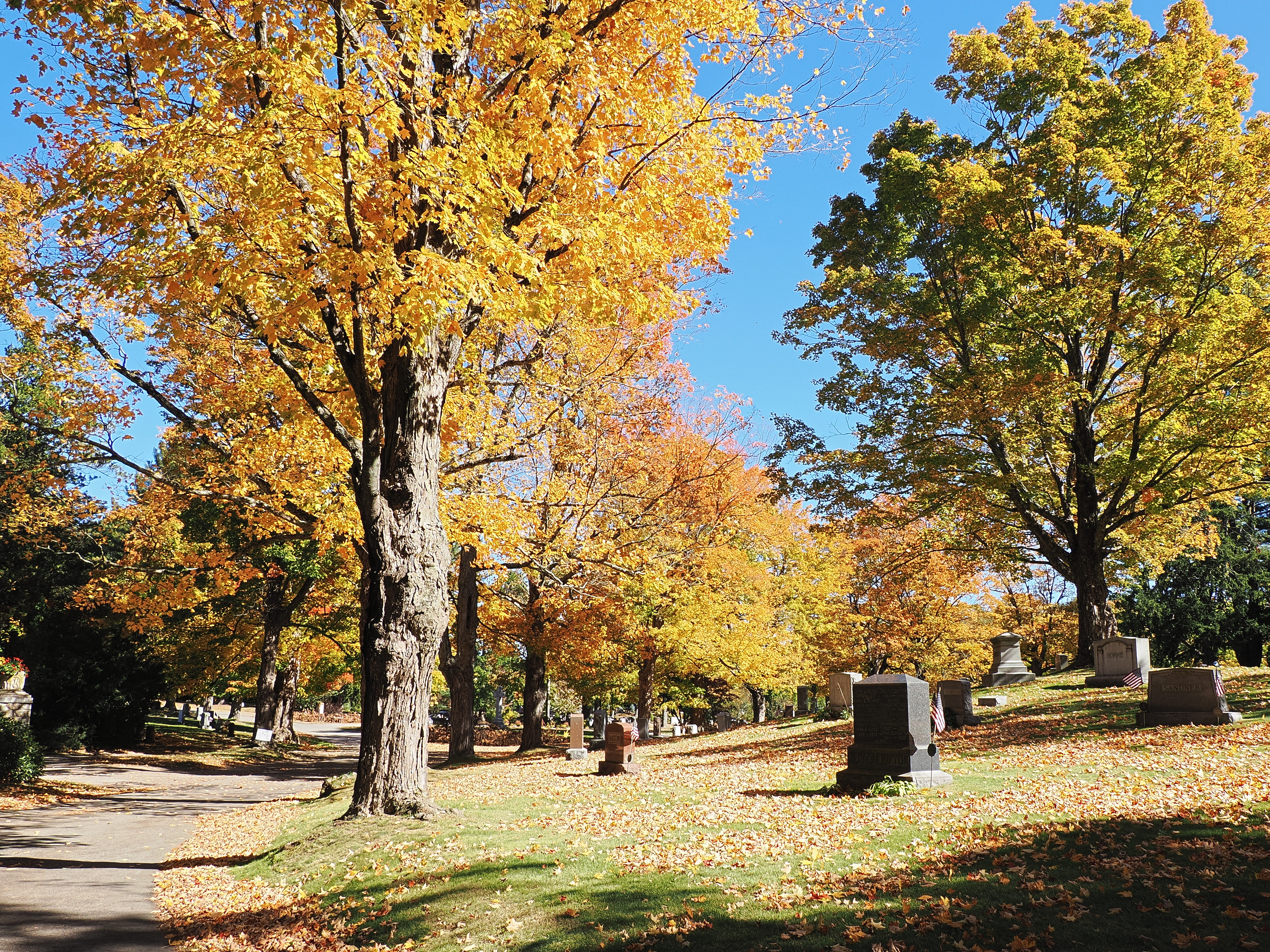 Picture #25: Fall leaves at the West Parish Garden Cemetery #12 Thumb: 480x360, 88,135 bytes (87K) Small: 960x743, 293,743 bytes (287K), (html file) Large: 4800x3600, 7,348,112 bytes (7.0M), (html file) Copyright, Michael Meissner 2024, All rights reserved OM OM1 camera with Olympus-m43 12-200mm f/3.5-6.3 lens f/6.3, ISO 320, 1/125 sec, 63.0mm, auto mode, vivid color, matrix metering, continous focus, IS Auto, anti-shock 35mm equivalent focal length 126.0mm Programs used: adjusttime, crop, raw therapee Taken by Michael Meissner on October 12, 2024 12:39:10 Last modified on October 13, 2024 at 16:32 This picture is one of my favorites. |