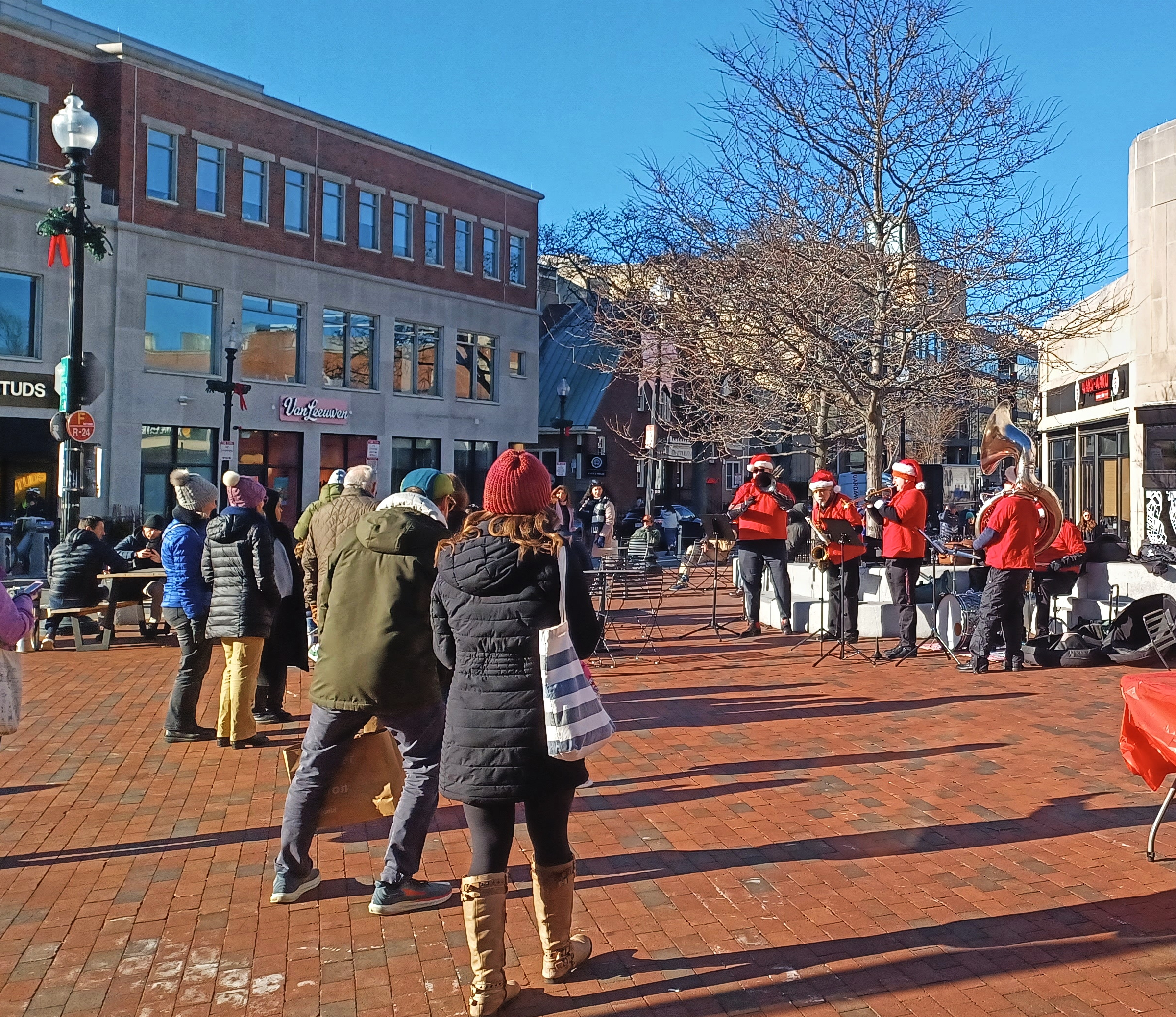 Picture #18: Christmas band in Harvard Square Thumb: 400x346, 43,549 bytes (43K) Small: 800x715, 186,259 bytes (182K), (html file) Large: 2400x2076, 4,478,808 bytes (4.3M), (html file) Copyright, Michael Meissner 2024, All rights reserved Samsung A32 5G phone f/1.8, ISO 32, 1/347 sec, 4.6mm, auto mode, center weight metering 35mm equivalent focal length 25.0mm Programs used: crop, gimp, raw therapee Taken by Michael Meissner on December 14, 2024 13:01:21 Last modified on December 21, 2024 at 19:22 |