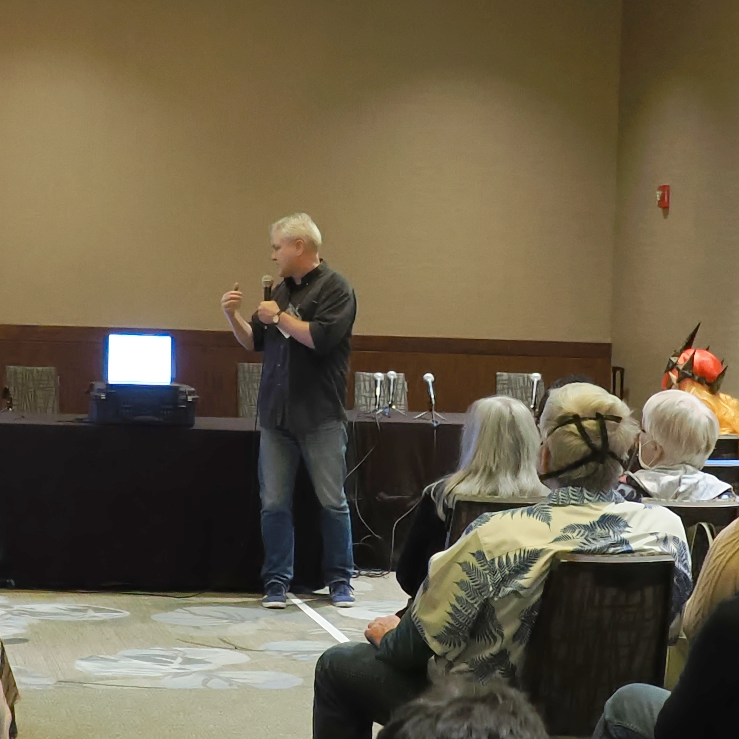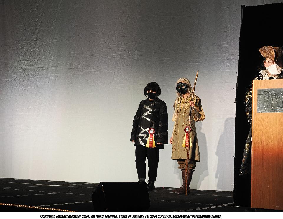 Picture #130: Masquerade workmanship judges Thumb: 480x360, 44,476 bytes (44K) Small: 960x743, 123,063 bytes (121K), (html file) Large: 4800x3600, 3,745,691 bytes (3.6M), (html file) Copyright, Michael Meissner 2024, All rights reserved OM OM1 camera with Olympus-m43 12-40mm f/2.8 lens f/2.8, ISO 320, 1/125 sec, 31.0mm, auto mode, vivid color, center weight metering, continous focus, IS Auto, face detection, anti-shock 35mm equivalent focal length 62.0mm Programs used: crop, raw therapee Taken by Michael Meissner on January 14, 2024 23:23:03 Last modified on January 31, 2024 at 00:03 |