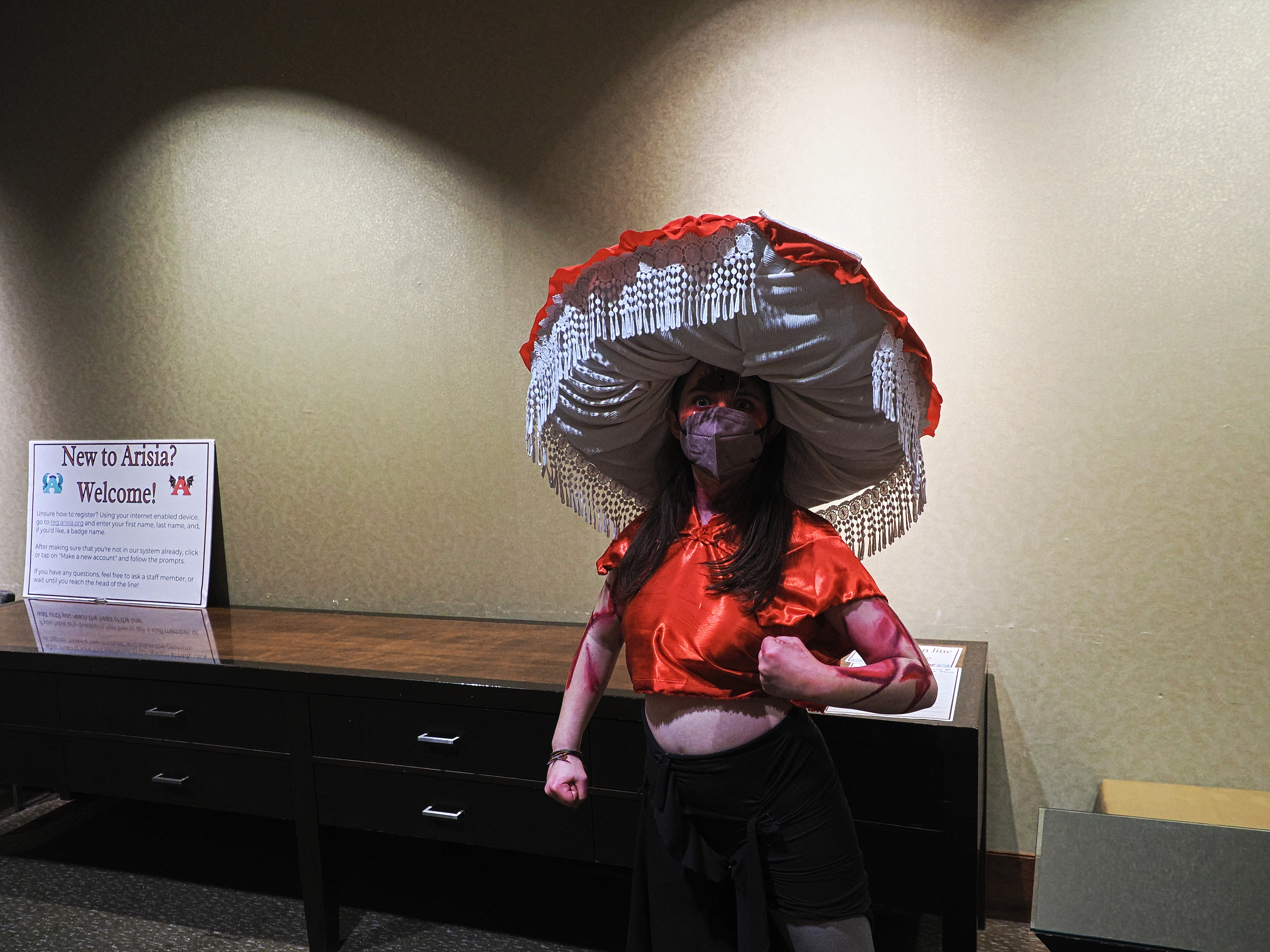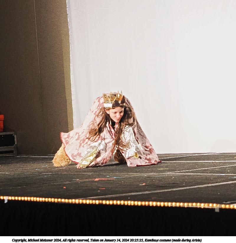 Picture #4: Kamikaze costume (made during Arisia) Thumb: 480x480, 48,454 bytes (48K) Small: 800x823, 102,432 bytes (101K), (html file) Large: 2400x2400, 1,154,370 bytes (1.1M), (html file) Copyright, Michael Meissner 2024, All rights reserved OM OM1 camera with Olympus-m43 12-40mm f/2.8 lens f/2.8, ISO 1250, 1/125 sec, 40.0mm, auto mode, vivid color, center weight metering, continous focus, IS Auto, face detection, anti-shock 35mm equivalent focal length 80.0mm Programs used: crop, raw therapee Taken by Michael Meissner on January 14, 2024 20:25:25 Last modified on January 28, 2024 at 02:45 |
