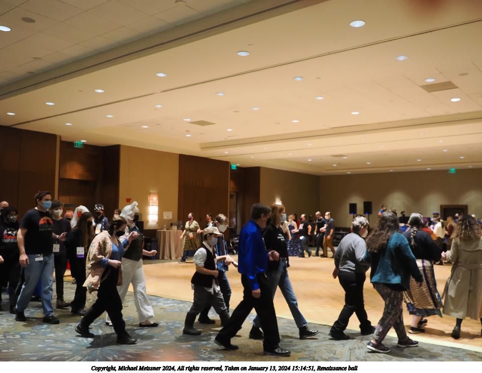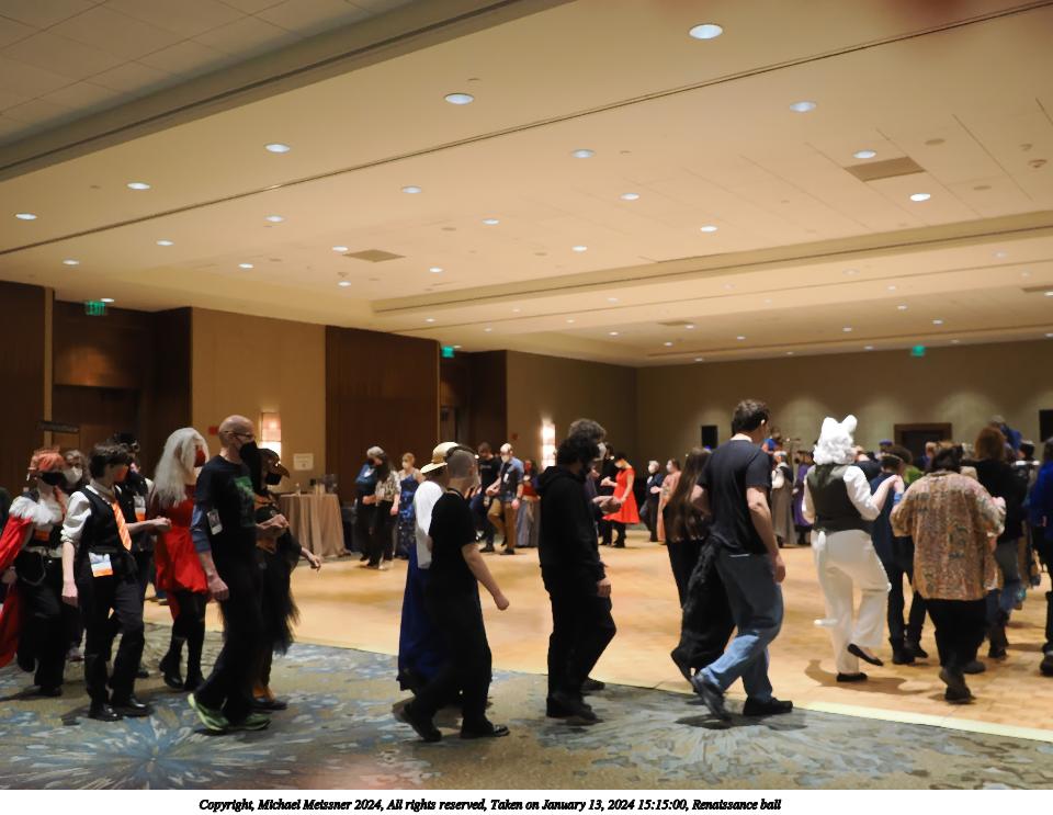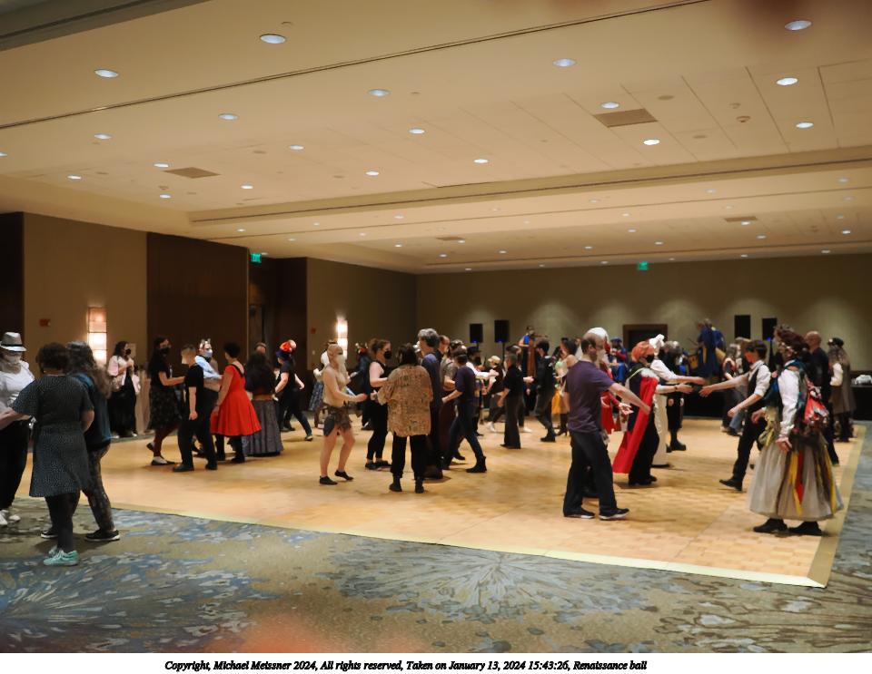 Picture #14: Renaissance ball #5 Thumb: 480x360, 53,929 bytes (53K) Small: 960x743, 116,881 bytes (115K), (html file) Large: 4800x3600, 1,963,523 bytes (1.9M), (html file) Copyright, Michael Meissner 2024, All rights reserved OM OM1 camera with Olympus-m43 12-40mm f/2.8 lens f/2.8, ISO 3200, 1/125 sec, 15.0mm, auto mode, vivid color, matrix metering, manual focus, IS Auto, anti-shock 35mm equivalent focal length 30.0mm Programs used: crop, raw therapee Taken by Michael Meissner on January 13, 2024 15:43:32 Last modified on January 21, 2024 at 01:19 |