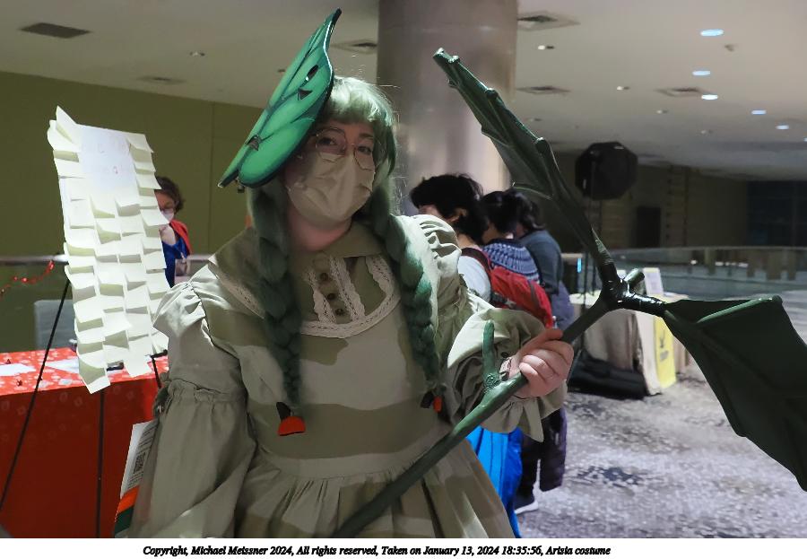 Picture #28: Arisia costume #8 Thumb: 480x360, 50,546 bytes (50K) Small: 960x743, 124,991 bytes (123K), (html file) Large: 4800x3600, 3,454,444 bytes (3.3M), (html file) Copyright, Michael Meissner 2024, All rights reserved Olympus E-M1-II camera with Sigma 16mm f/1.4 lens f/1.4, ISO 200, flash, 1/60 sec, 16.0mm, auto mode, natural color, SHQ, matrix metering, continous focus, IS Auto, both eyes priority, face detection, anti-shock 35mm equivalent focal length 32.0mm Programs used: crop, raw therapee Taken by Michael Meissner on January 13, 2024 22:38:07 Last modified on January 21, 2024 at 01:27 |