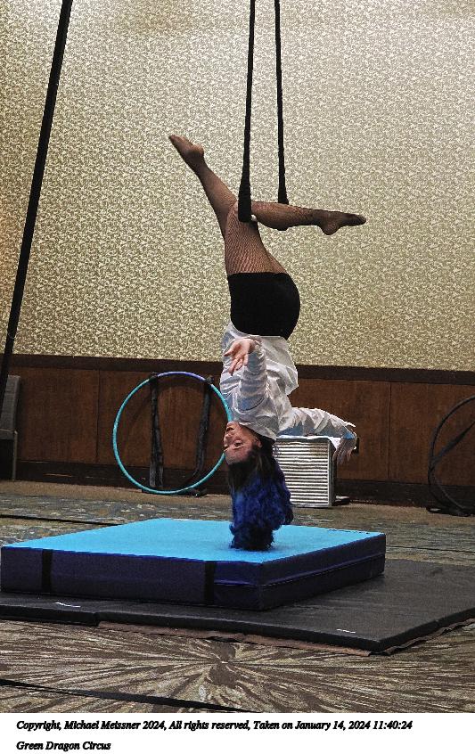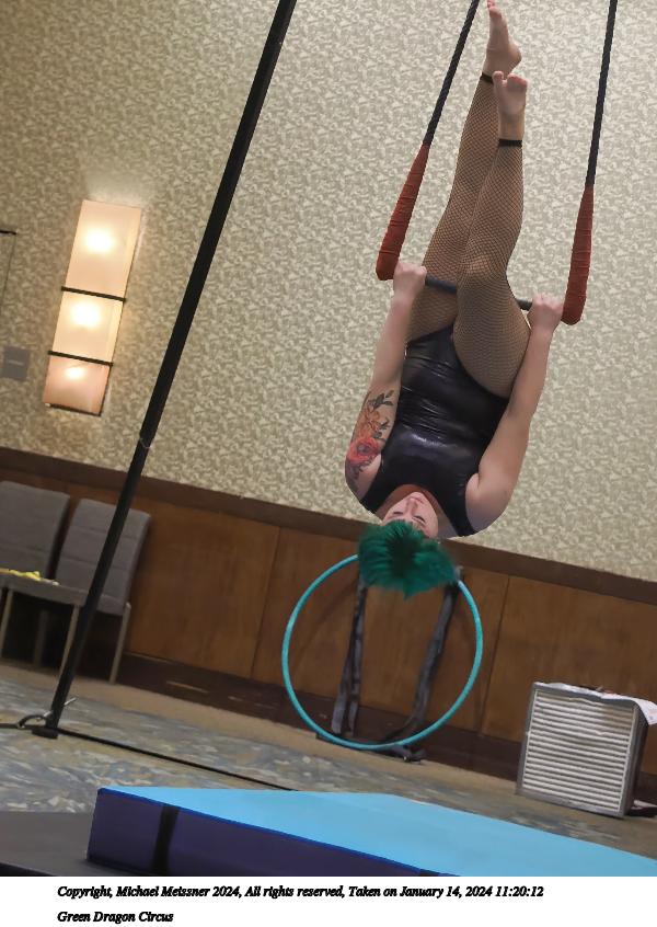 Picture #9: Green Dragon Circus #9 Thumb: 360x480, 55,387 bytes (55K) Small: 720x983, 151,989 bytes (149K), (html file) Large: 3600x4800, 7,265,260 bytes (6.9M), (html file) Copyright, Michael Meissner 2024, All rights reserved OM OM1 camera with Olympus-m43 12-40mm f/2.8 lens f/2.8, ISO 3200, 1/125 sec, 38.0mm, auto mode, vivid color, matrix metering, continous focus, IS Auto, face detection, anti-shock 35mm equivalent focal length 76.0mm Programs used: crop, gimp, raw therapee, rotate right Taken by Michael Meissner on January 14, 2024 11:29:07 Last modified on January 22, 2024 at 00:37 |