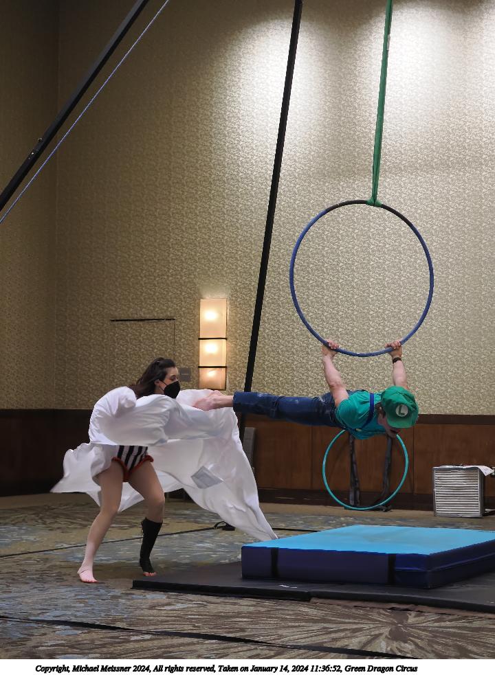 Picture #29: Green Dragon Circus #29 Thumb: 360x480, 62,083 bytes (61K) Small: 720x983, 216,318 bytes (212K), (html file) Large: 3600x4800, 12,740,611 bytes (13M), (html file) Copyright, Michael Meissner 2024, All rights reserved OM OM1 camera with Olympus-m43 12-40mm f/2.8 lens f/2.8, ISO 2000, 1/125 sec, 40.0mm, auto mode, vivid color, matrix metering, continous focus, IS Auto, face detection, anti-shock 35mm equivalent focal length 80.0mm Programs used: crop, gimp, raw therapee, rotate right Taken by Michael Meissner on January 14, 2024 11:50:00 Last modified on January 22, 2024 at 01:08 |
