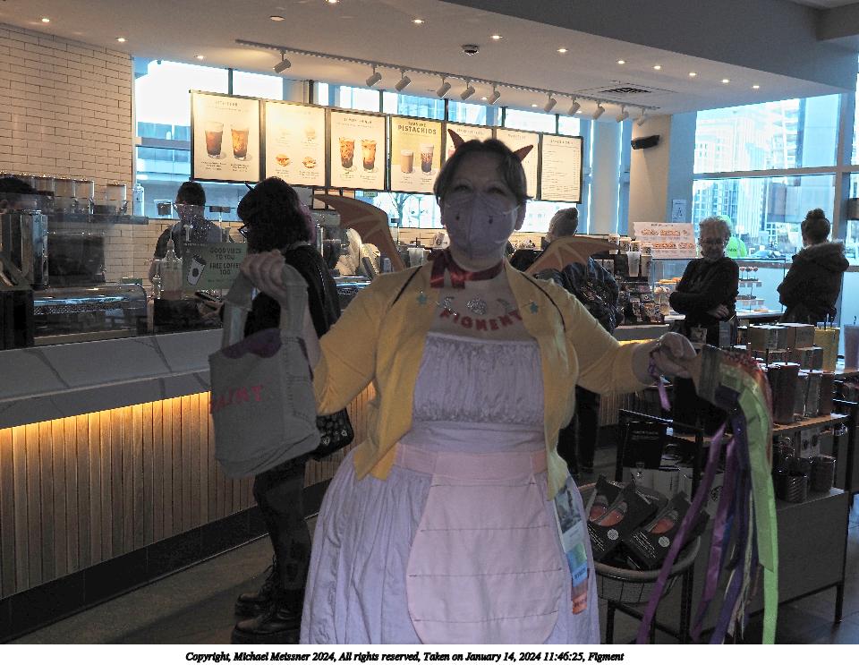 Picture #29: Figment Thumb: 480x360, 52,748 bytes (52K) Small: 960x743, 141,694 bytes (139K), (html file) Large: 4800x3600, 8,961,382 bytes (8.5M), (html file) Copyright, Michael Meissner 2024, All rights reserved Olympus E-M1-II camera with Sigma 16mm f/1.4 lens f/2.8, ISO 200, flash, 1/250 sec, 16.0mm, auto mode, natural color, SHQ, matrix metering, continous focus, IS Auto, both eyes priority, face detection, anti-shock 35mm equivalent focal length 32.0mm Programs used: crop, gimp, raw therapee Taken by Michael Meissner on January 14, 2024 11:46:25 Last modified on January 22, 2024 at 00:59 |