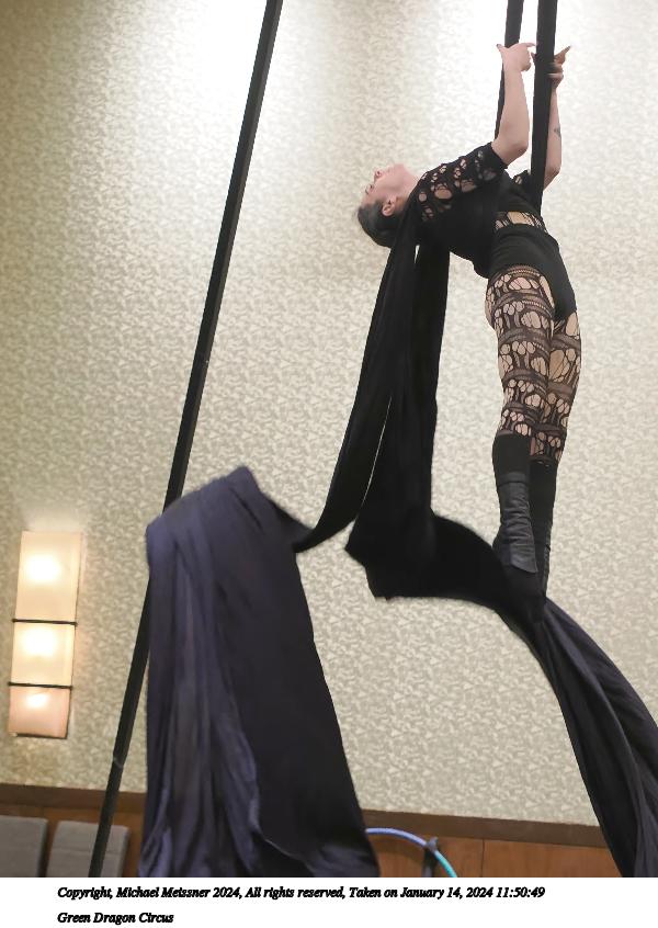 Picture #10: Green Dragon Circus #10 Thumb: 360x480, 63,191 bytes (62K) Small: 720x983, 199,126 bytes (195K), (html file) Large: 3600x4800, 12,230,452 bytes (12M), (html file) Copyright, Michael Meissner 2024, All rights reserved OM OM1 camera with Olympus-m43 12-40mm f/2.8 lens f/2.8, ISO 2500, 1/125 sec, 38.0mm, auto mode, vivid color, matrix metering, continous focus, IS Auto, face detection, anti-shock 35mm equivalent focal length 76.0mm Programs used: crop, gimp, raw therapee, rotate right Taken by Michael Meissner on January 14, 2024 11:29:13 Last modified on January 22, 2024 at 00:40 |