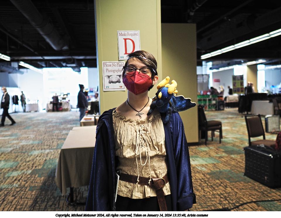 Picture #25: Arisia costume #6 Thumb: 480x360, 52,098 bytes (51K) Small: 960x743, 138,816 bytes (136K), (html file) Large: 4800x3600, 4,020,797 bytes (3.8M), (html file) Copyright, Michael Meissner 2024, All rights reserved Olympus E-M1-II camera with Sigma 16mm f/1.4 lens f/1.4, ISO 500, flash, 1/60 sec, 16.0mm, auto mode, natural color, SHQ, matrix metering, continous focus, IS Auto, both eyes priority, face detection, anti-shock 35mm equivalent focal length 32.0mm Programs used: crop, raw therapee Taken by Michael Meissner on January 13, 2024 19:50:37 Last modified on January 21, 2024 at 01:24 |