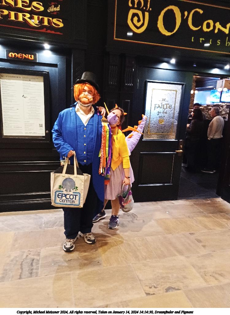 Picture #36: Dreamfinder and Figment #2 Thumb: 375x500, 39,827 bytes (39K) Small: 750x1023, 125,578 bytes (123K), (html file) Large: 3000x4000, 2,763,981 bytes (2.6M), (html file) Copyright, Michael Meissner 2024, All rights reserved Samsung A32 5G phone f/1.8, ISO 1600, 1/15 sec, 4.6mm, auto mode, center weight metering 35mm equivalent focal length 25.0mm Programs used: raw therapee, rotate right Taken by Michael Meissner on January 14, 2024 14:14:30 Last modified on January 22, 2024 at 01:22 |