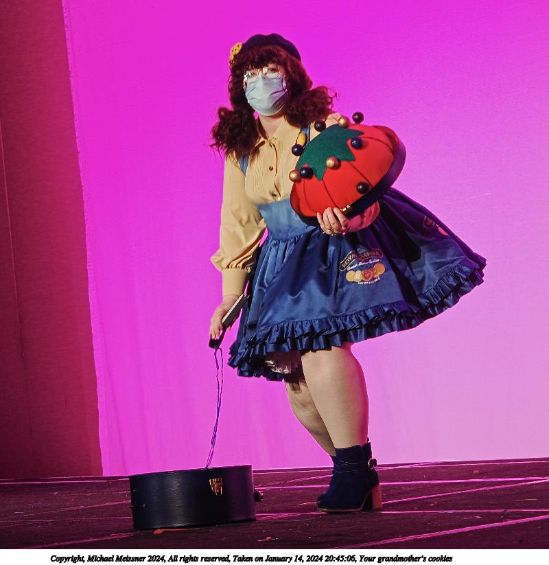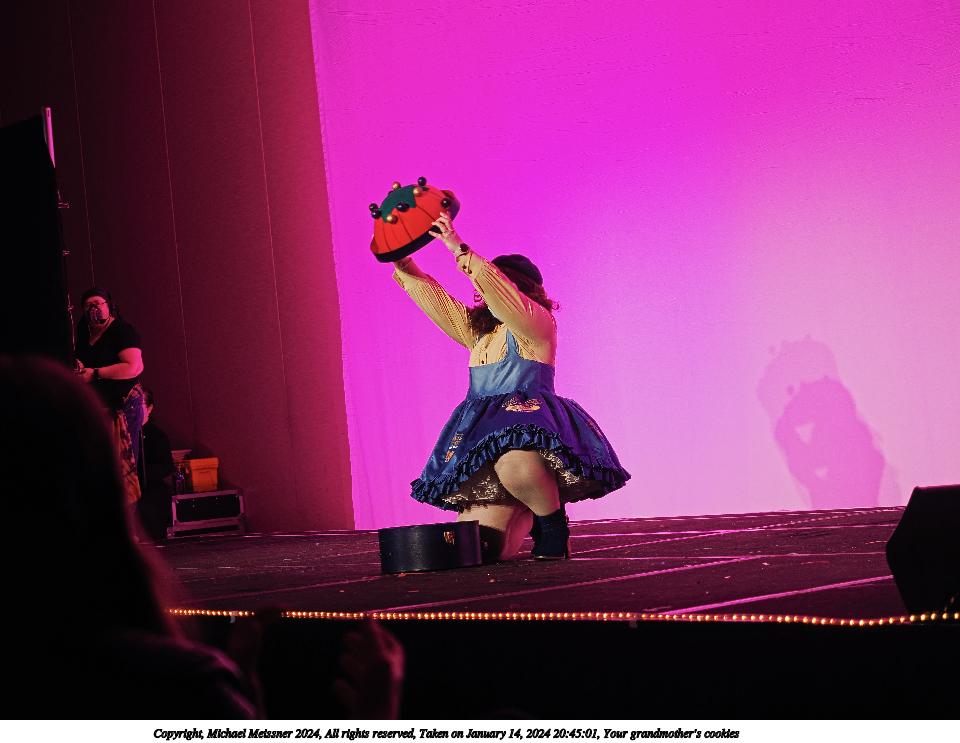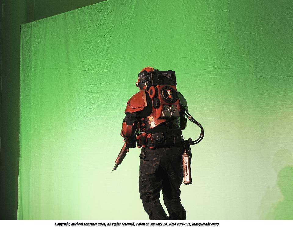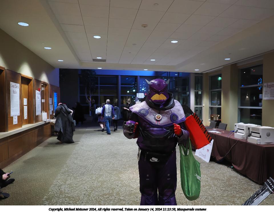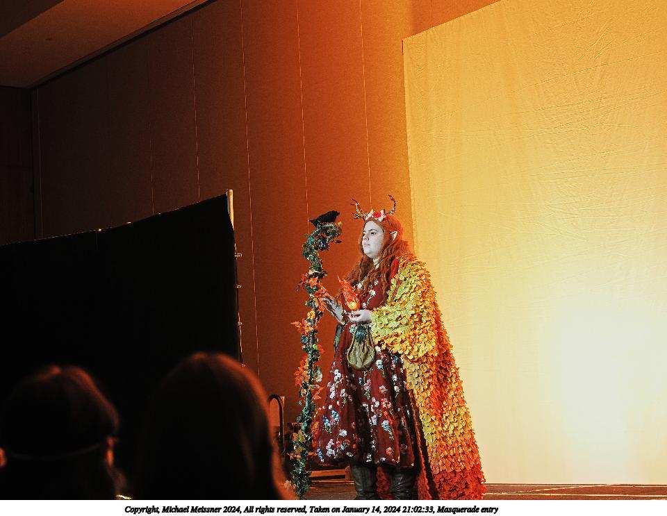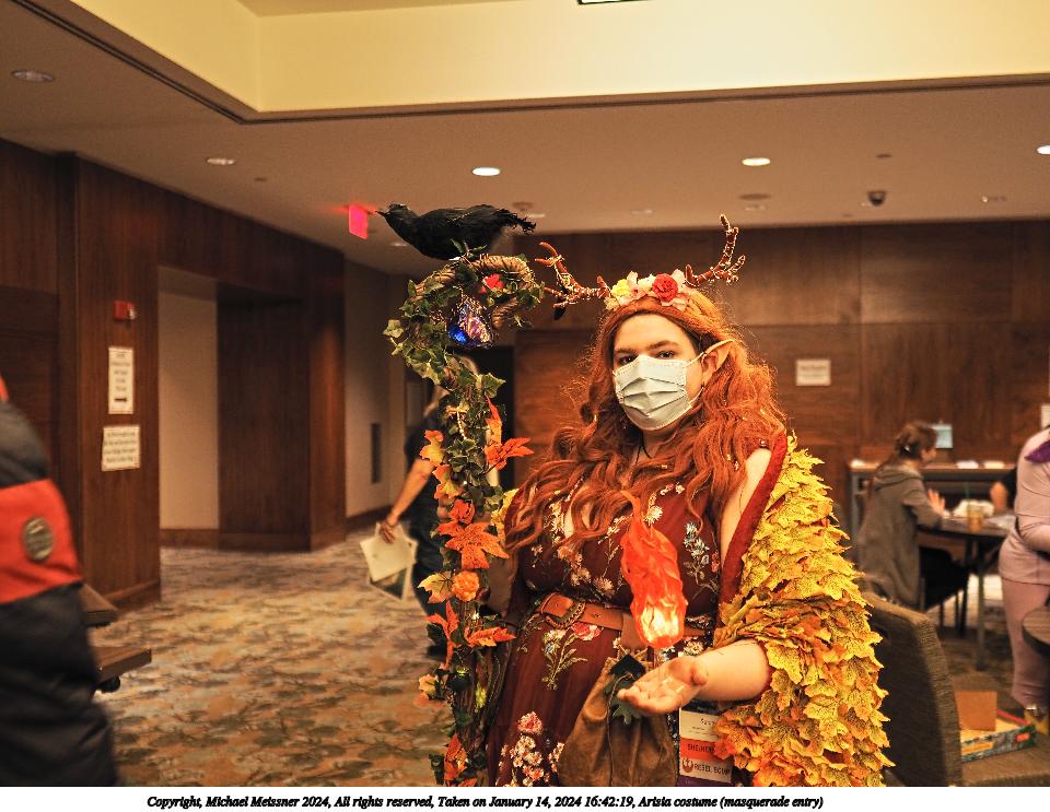 Picture #72: Masquerade entry #24 Thumb: 272x400, 35,797 bytes (35K) Small: 543x846, 82,368 bytes (81K), (html file) Large: 2000x2944, 3,572,800 bytes (3.4M), (html file) Copyright, Michael Meissner 2024, All rights reserved OM OM1 camera with Olympus-m43 12-40mm f/2.8 lens f/2.8, ISO 250, 1/125 sec, 31.0mm, auto mode, vivid color, center weight metering, continous focus, IS Auto, face detection, anti-shock 35mm equivalent focal length 62.0mm Programs used: crop, gimp, raw therapee Taken by Michael Meissner on January 14, 2024 20:51:17 Last modified on January 30, 2024 at 23:30 |